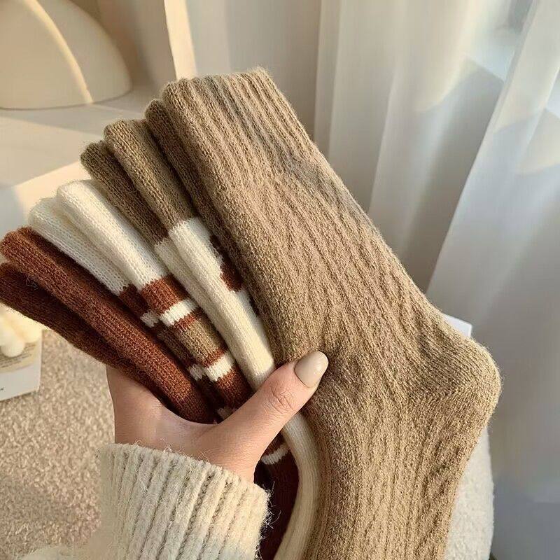 耐尔绵羊毛袜子女秋冬长袜加厚保暖复古百搭中筒袜ins潮堆堆袜