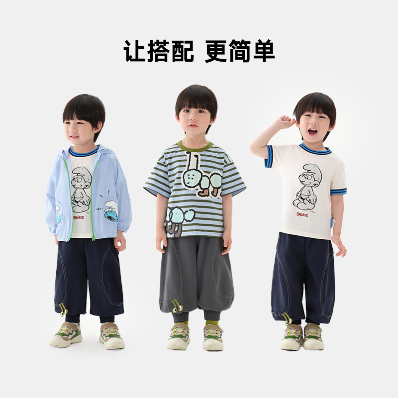 【防蚊裤】马拉丁童装裤子25夏新款男小童趣味弧线分割线针织长裤