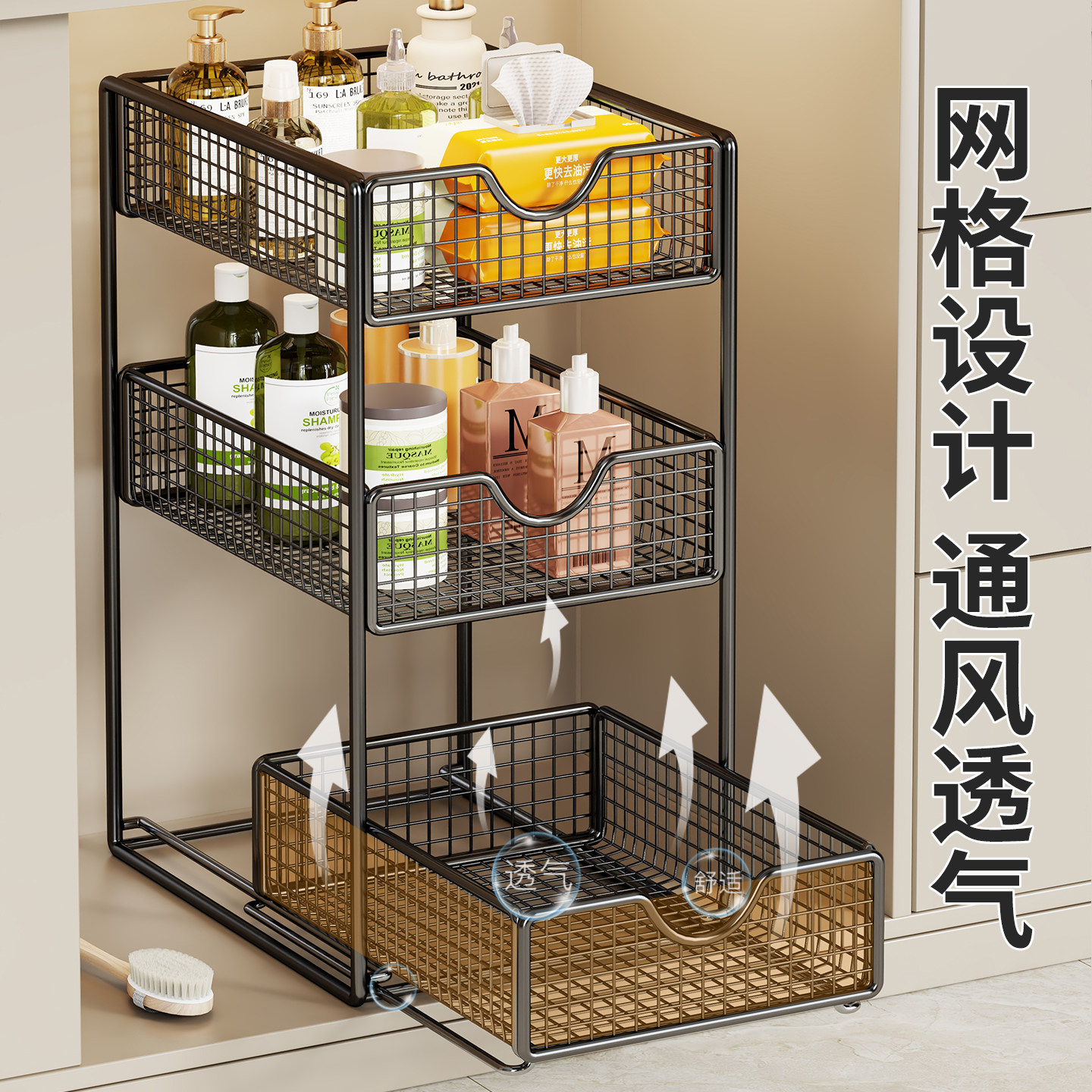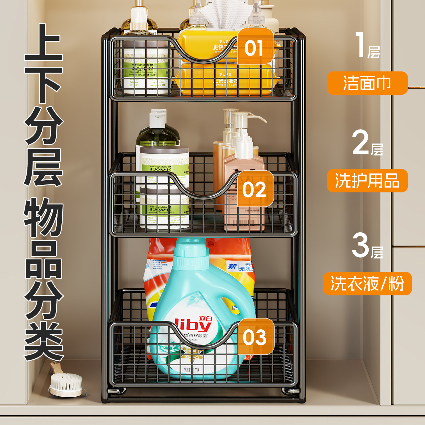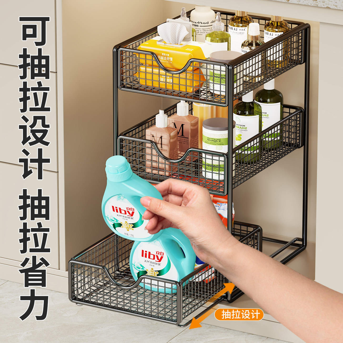 厨房抽拉式置物架橱柜内分层架洗漱台下多功能大容量免打孔收纳架