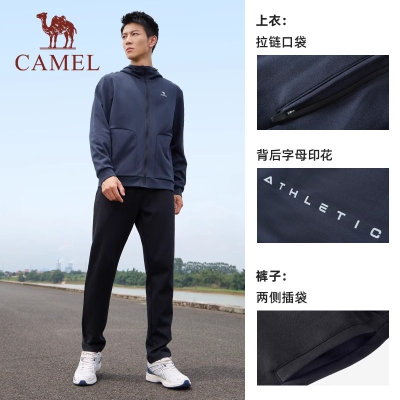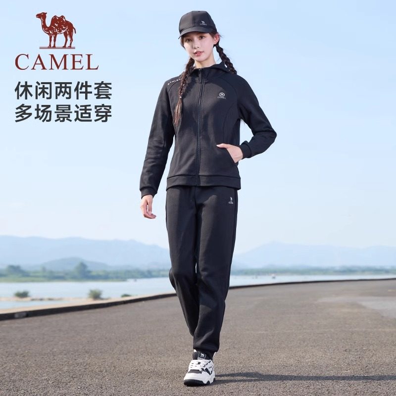 骆驼女装套装女2025春季新款连帽外套夹克上衣运动跑步裤子男