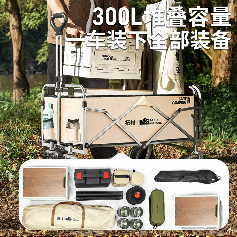 拓村露营车户外折叠摆摊小推车儿童可躺收纳车野营野餐手推营地车
