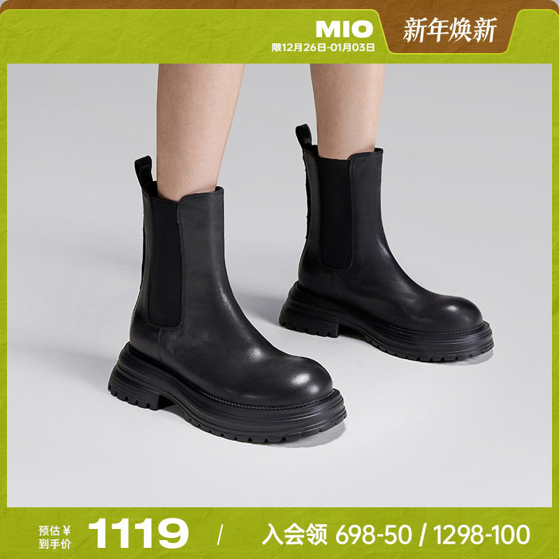 MIO米奥冬季简约风酷感厚底圆头切尔西靴小众黑色靴子女经典短靴