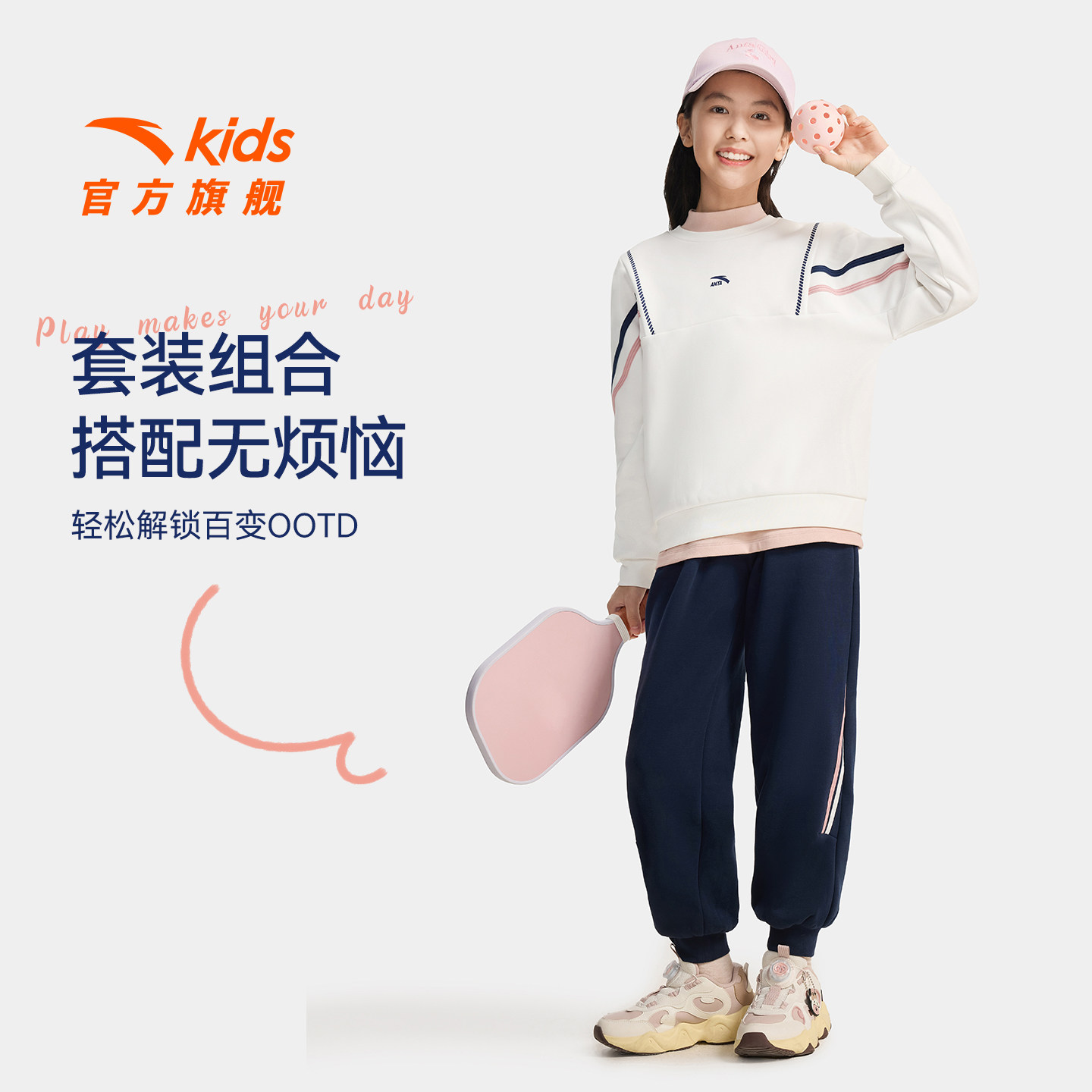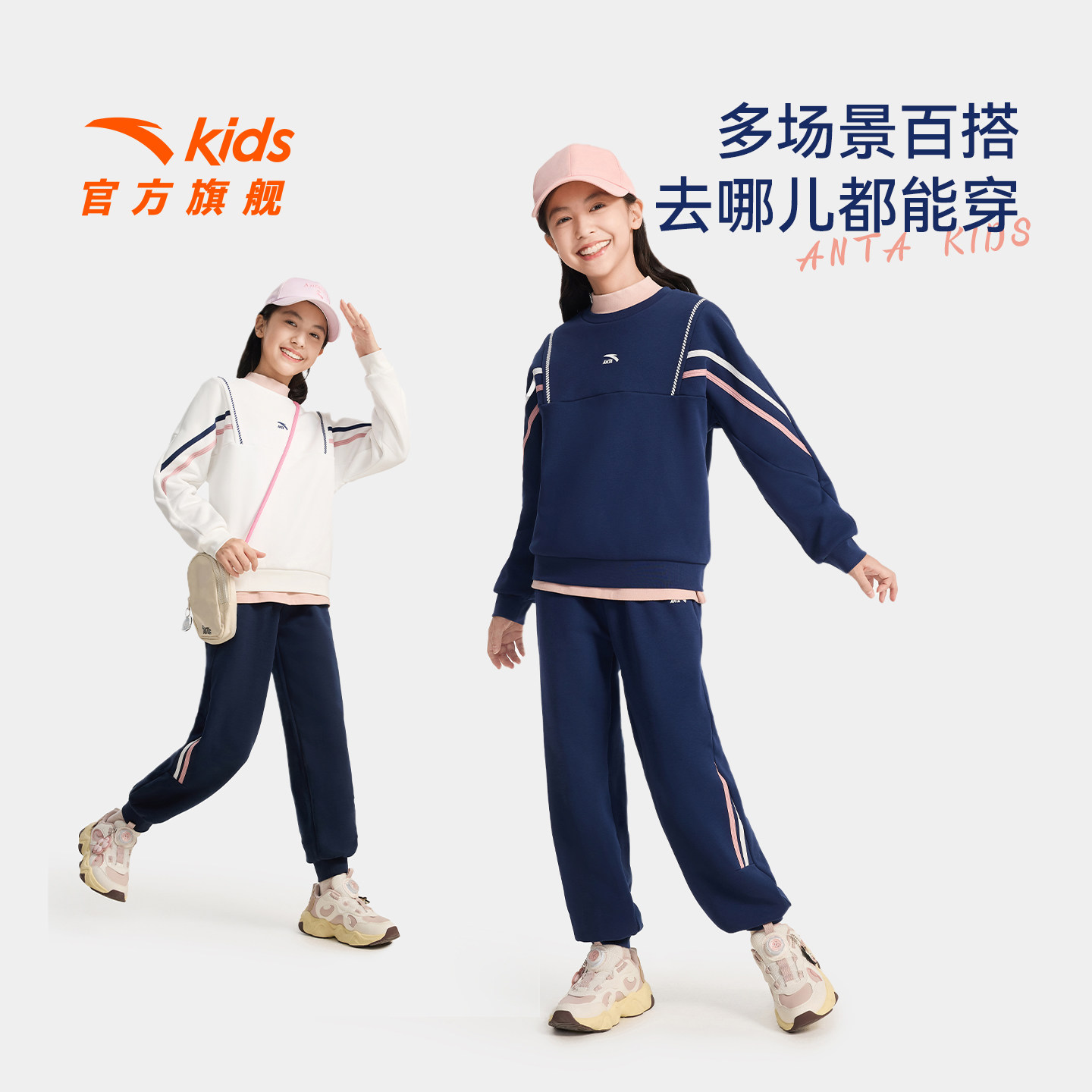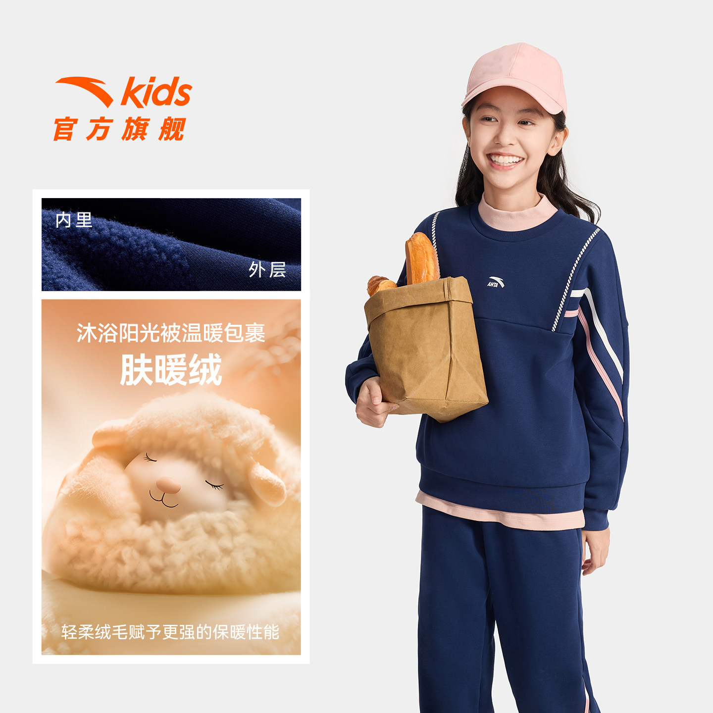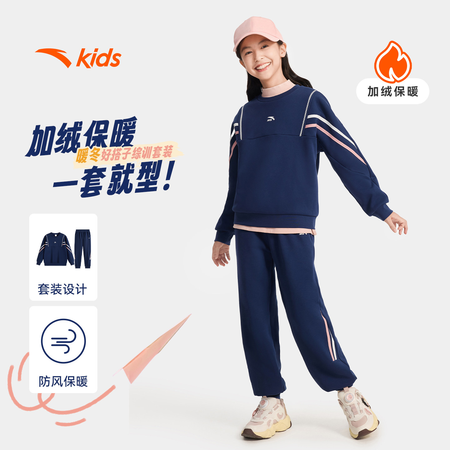安踏儿童装女童套装时髦洋气两件套2025冬款保暖卫衣裤子加绒套装