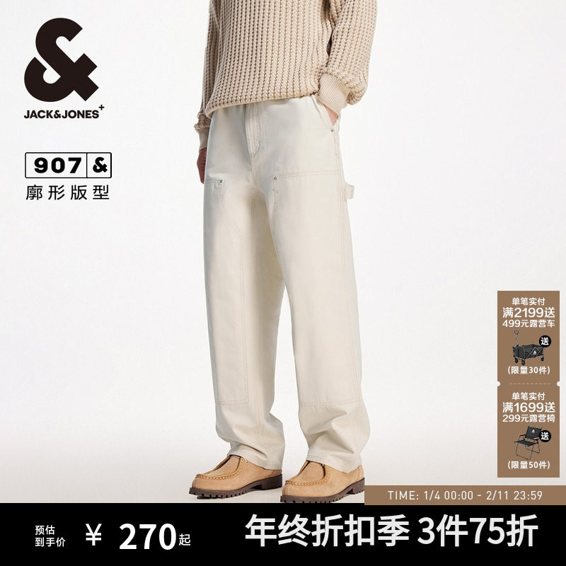 907杰克琼斯阔腿裤工装贴布双侧插袋廓形长裤子牛仔裤秋季男装士