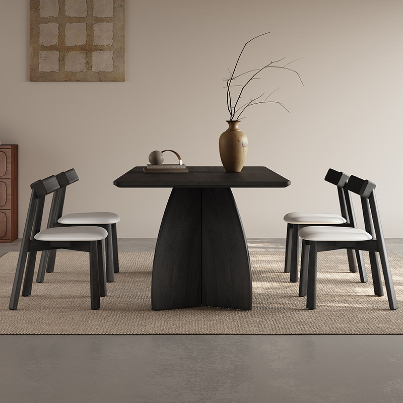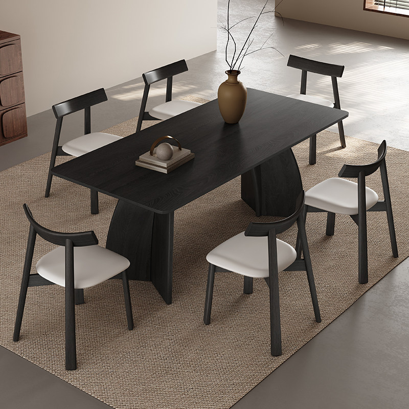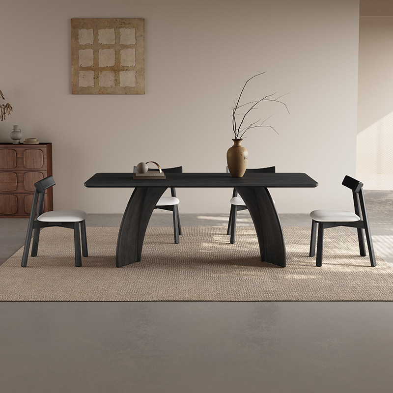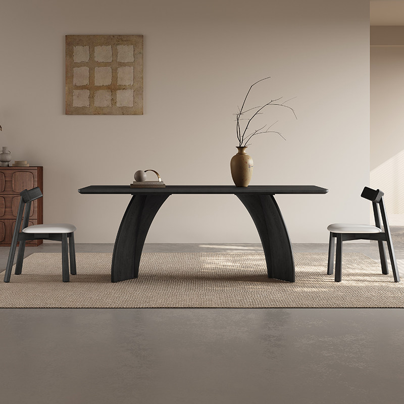 黑色实木餐桌家用小户型饭桌2025新款法式复古风长方形实木面餐桌