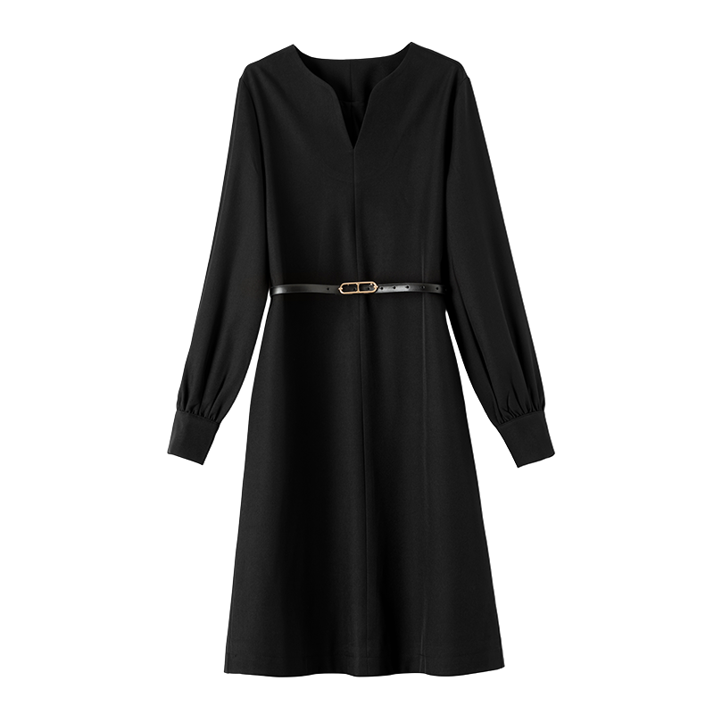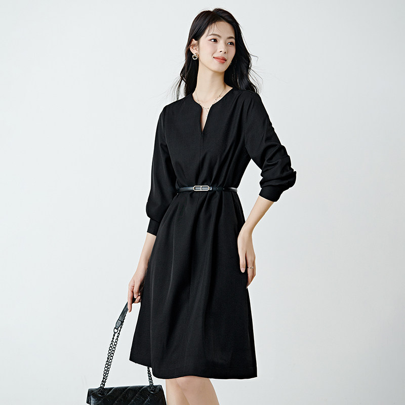 COCOBELLA简约气质黑色收腰极简风连衣裙女优雅短袖长裙FR3033-2