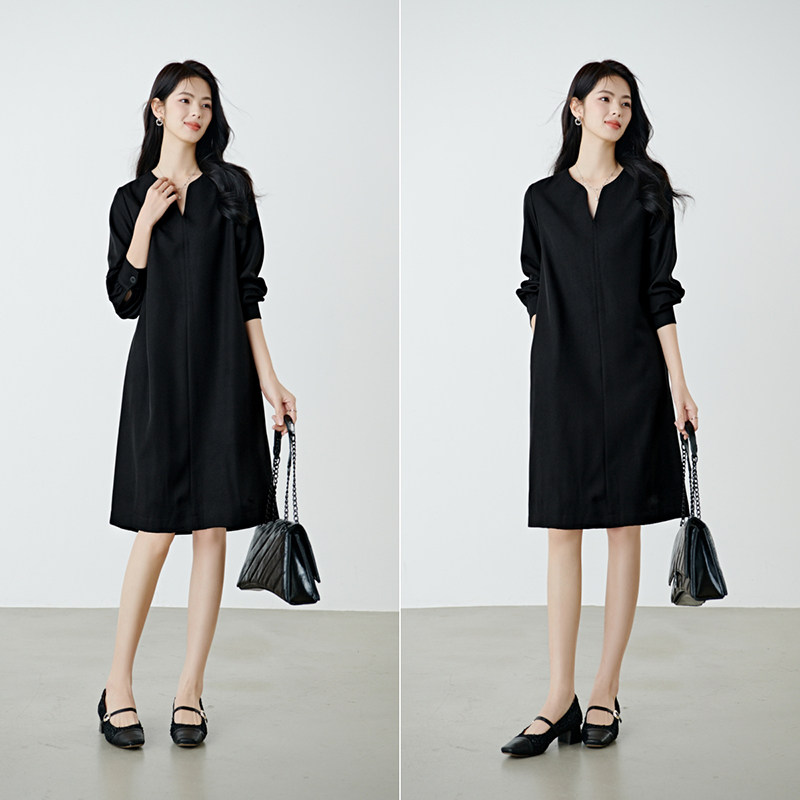 【高包容度大码系列】晚白2026年春新款圆领裙子系带长袖连衣裙