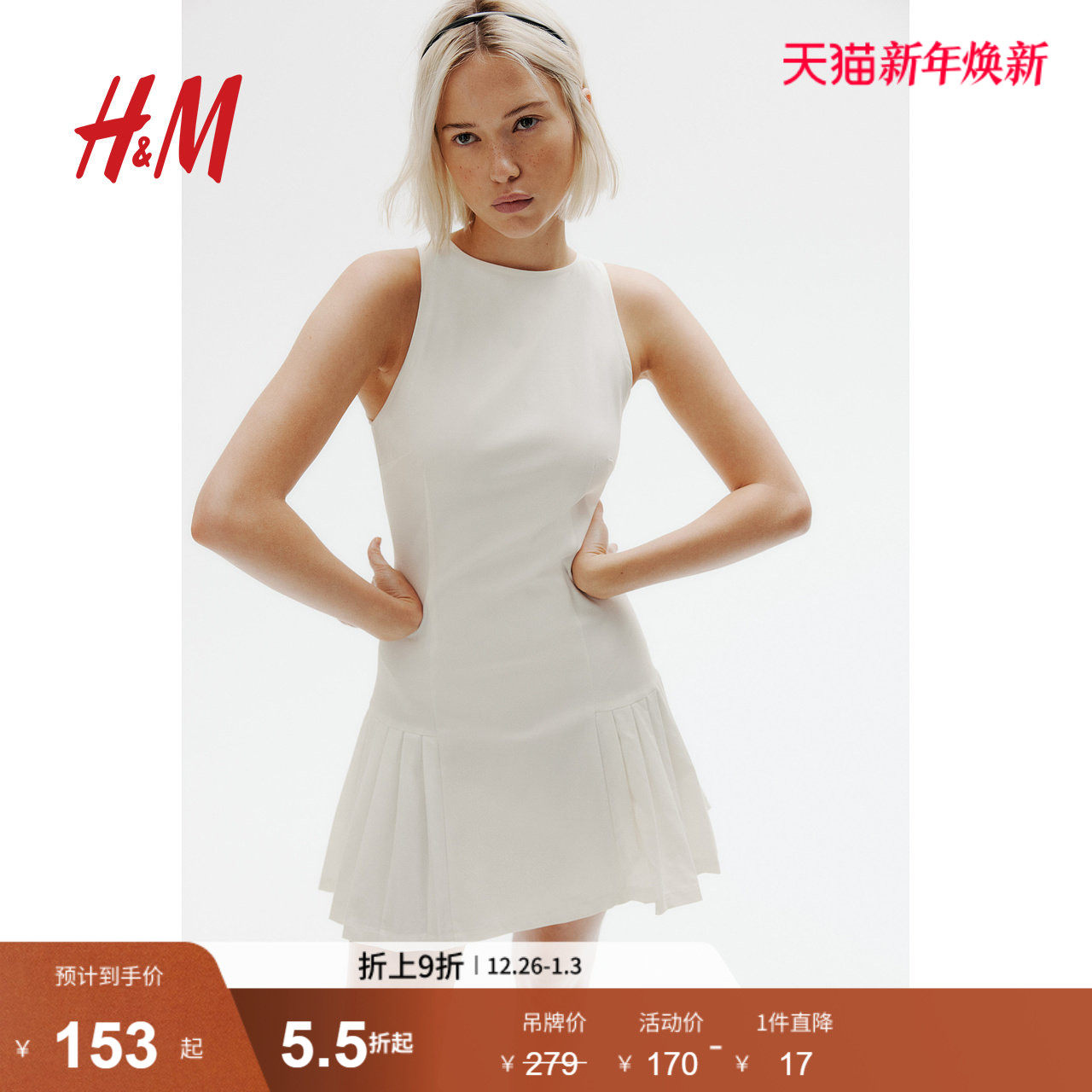 HM女装连衣裙春季修身斜纹布无袖圆领A字连衣短裙1285291