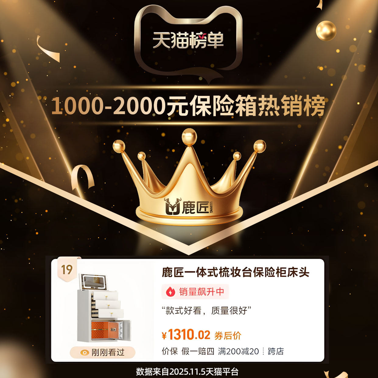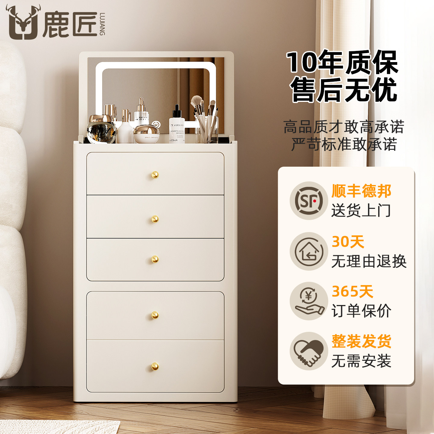 鹿匠智能梳妆台带保险箱一体式隐形指纹防盗保险柜家用化妆镜带灯抽屉柜带锁小户型卧室衣帽间化妆桌床头柜