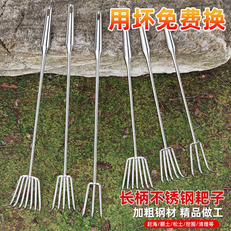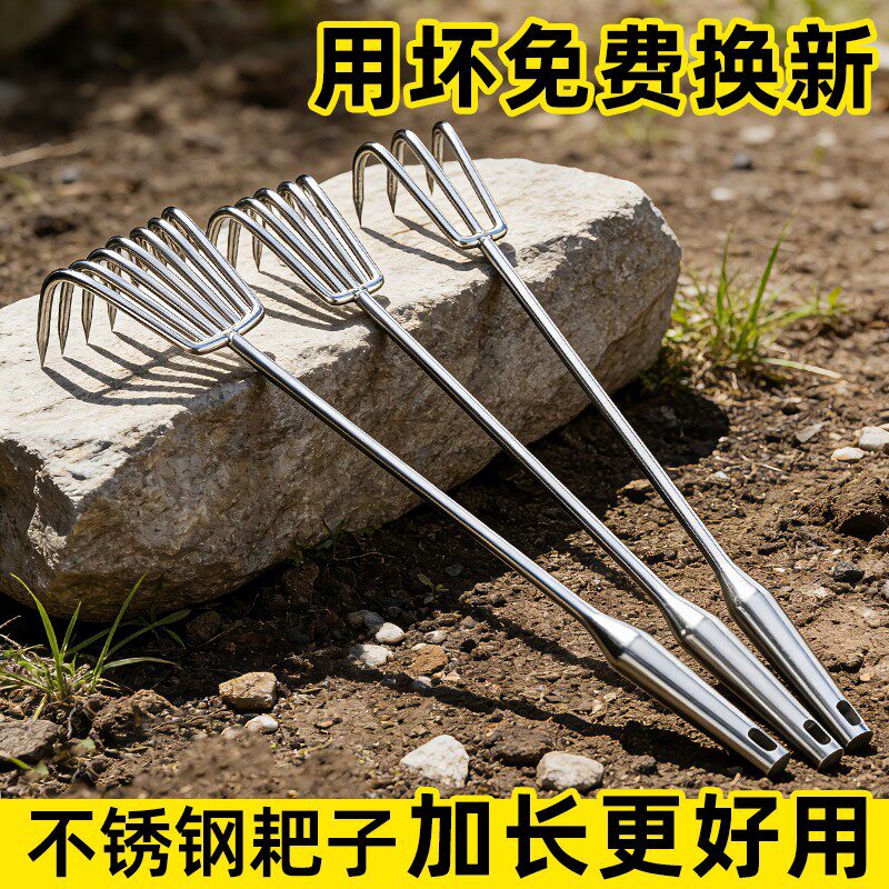 不锈钢铁耙子一体加长钢柄松土耙花园松土种菜长柄加粗家用大铲子