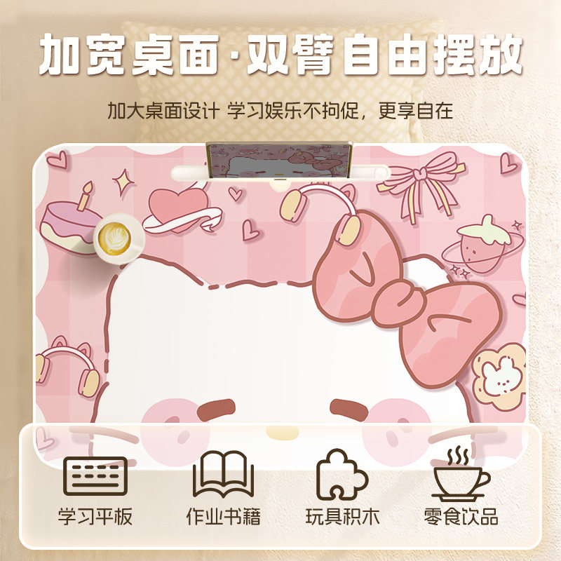 凯蒂猫床上小桌子儿童学习桌学生宿舍家用飘窗坐地膝上桌写字桌加高加大可折叠坐在床上写作业的桌子卡通可爱