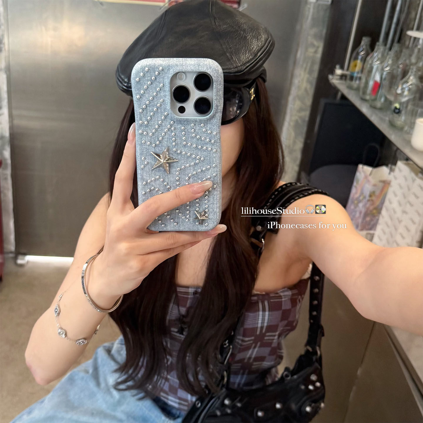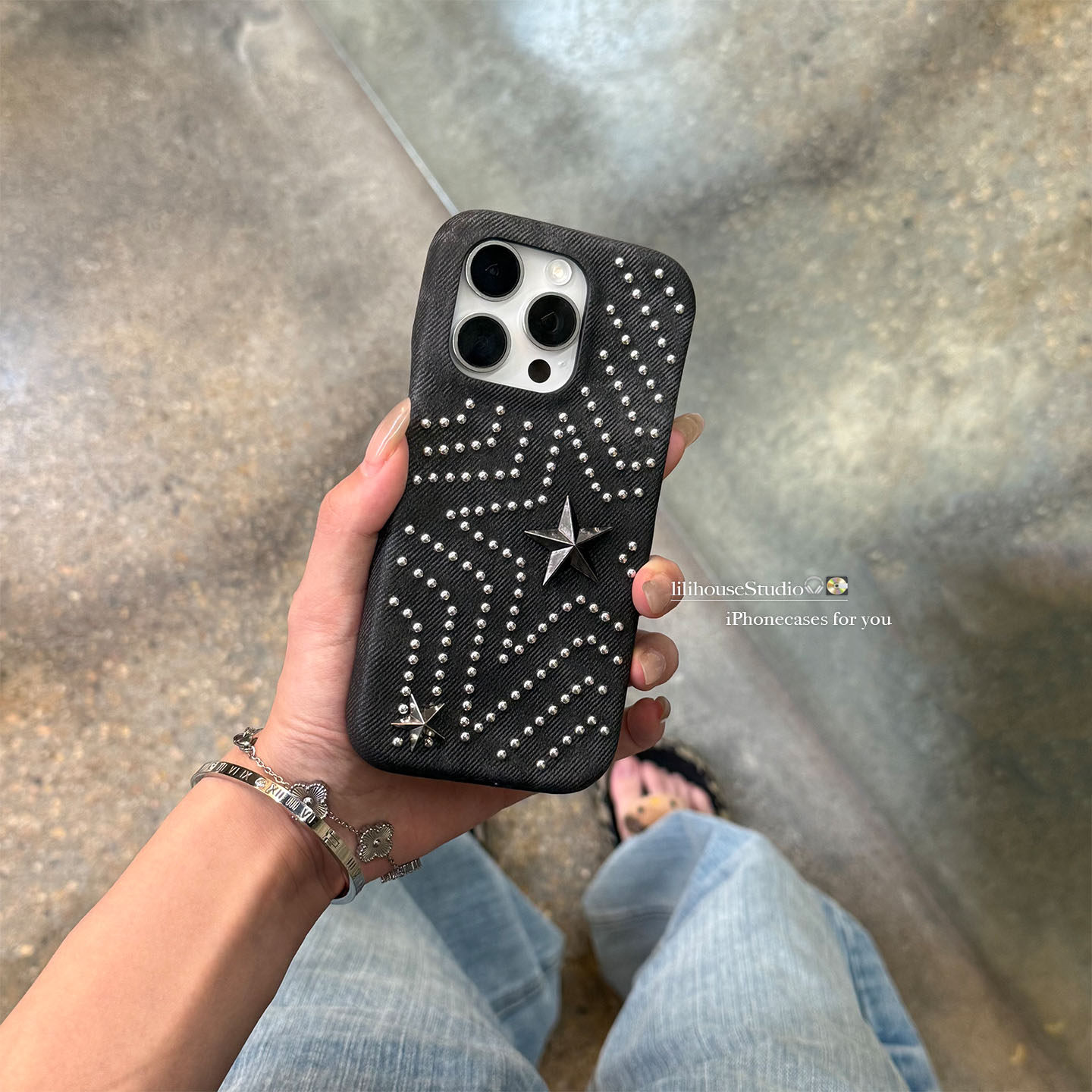 lilihouse韩国ins小众时髦牛仔布立体铆钉星星15适用17pro苹果17ProMax手机壳iPhone16全包17新款14Pro保护套