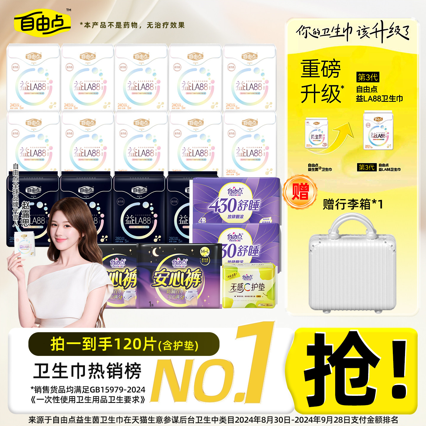 赵露思同款自由点益生菌卫生巾日用夜用组合装姨妈巾行李箱防漏