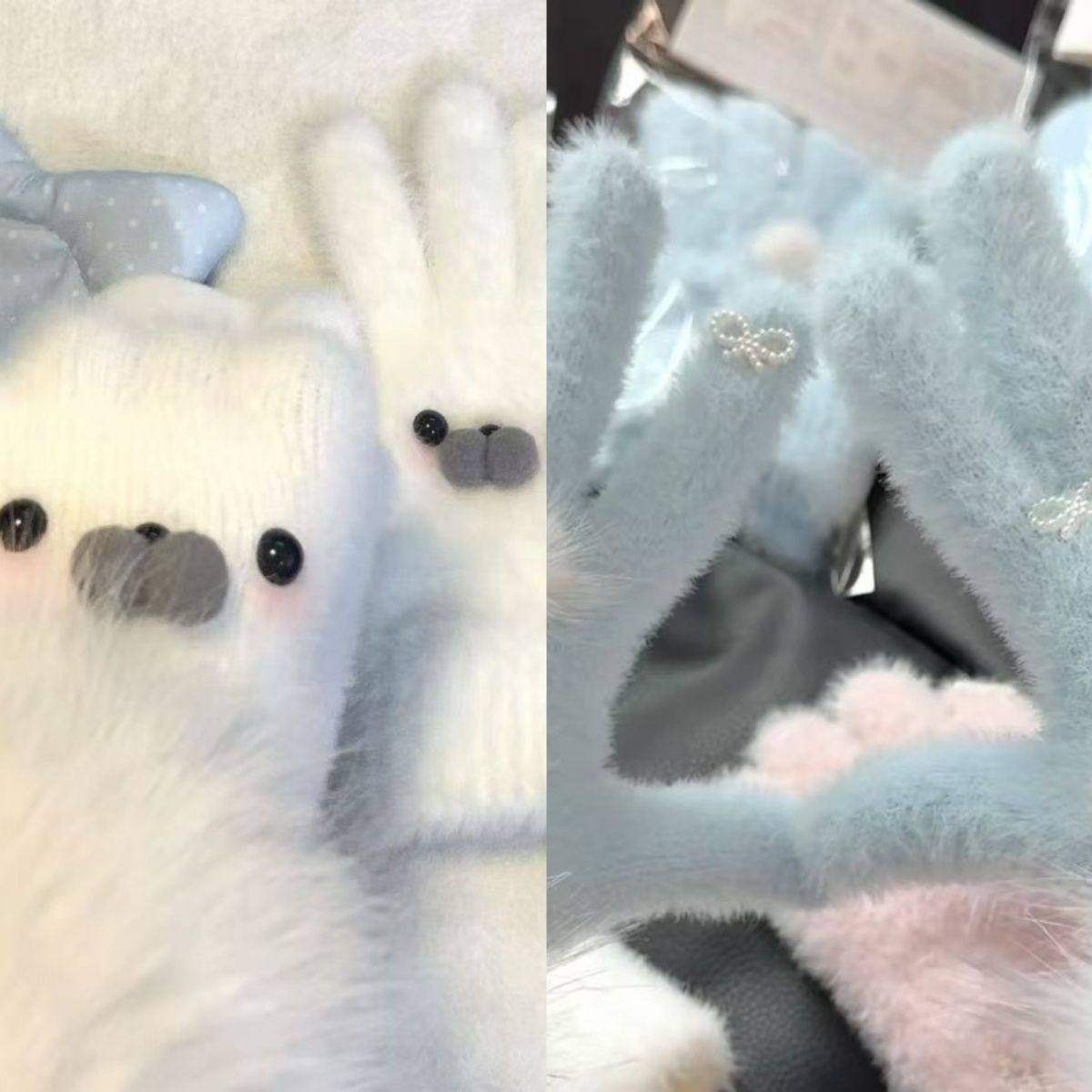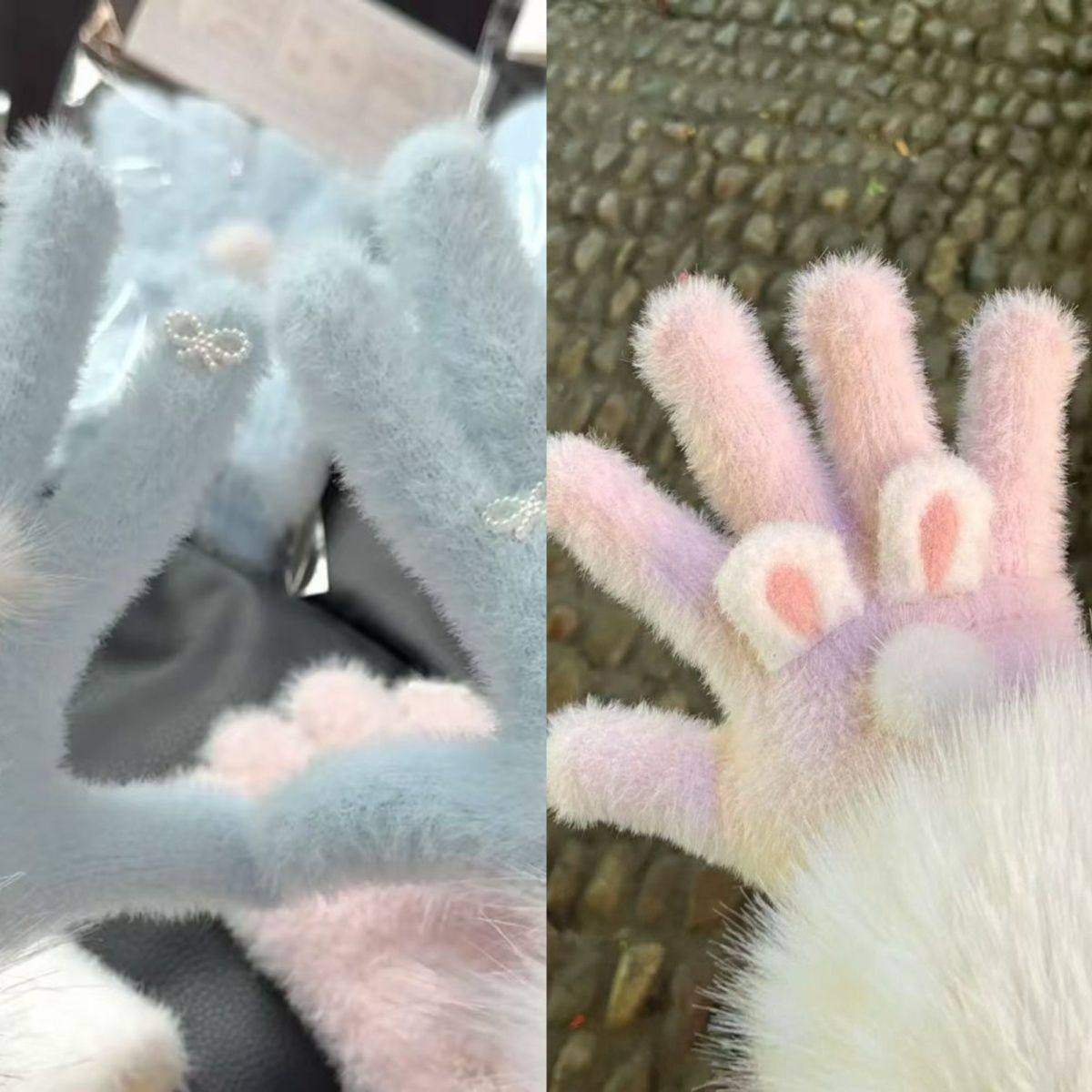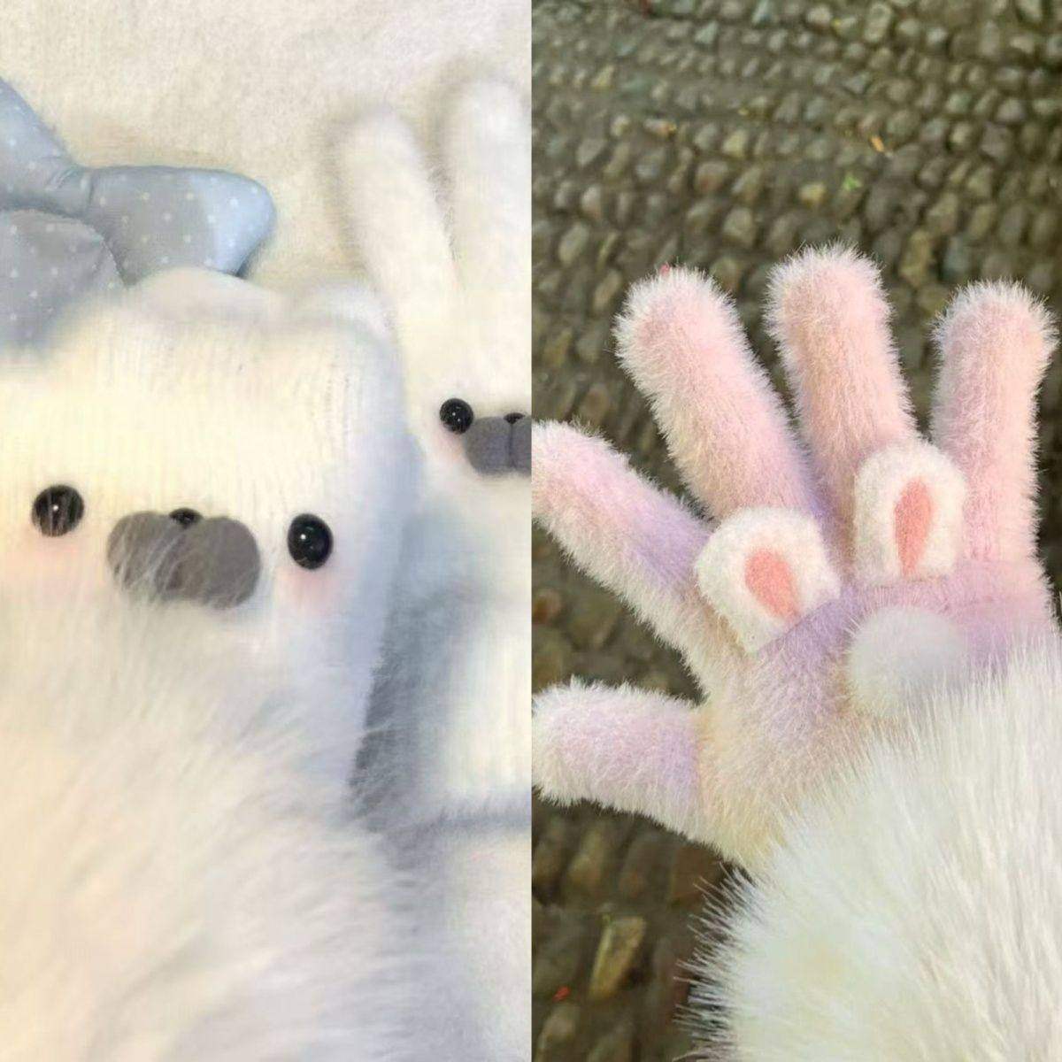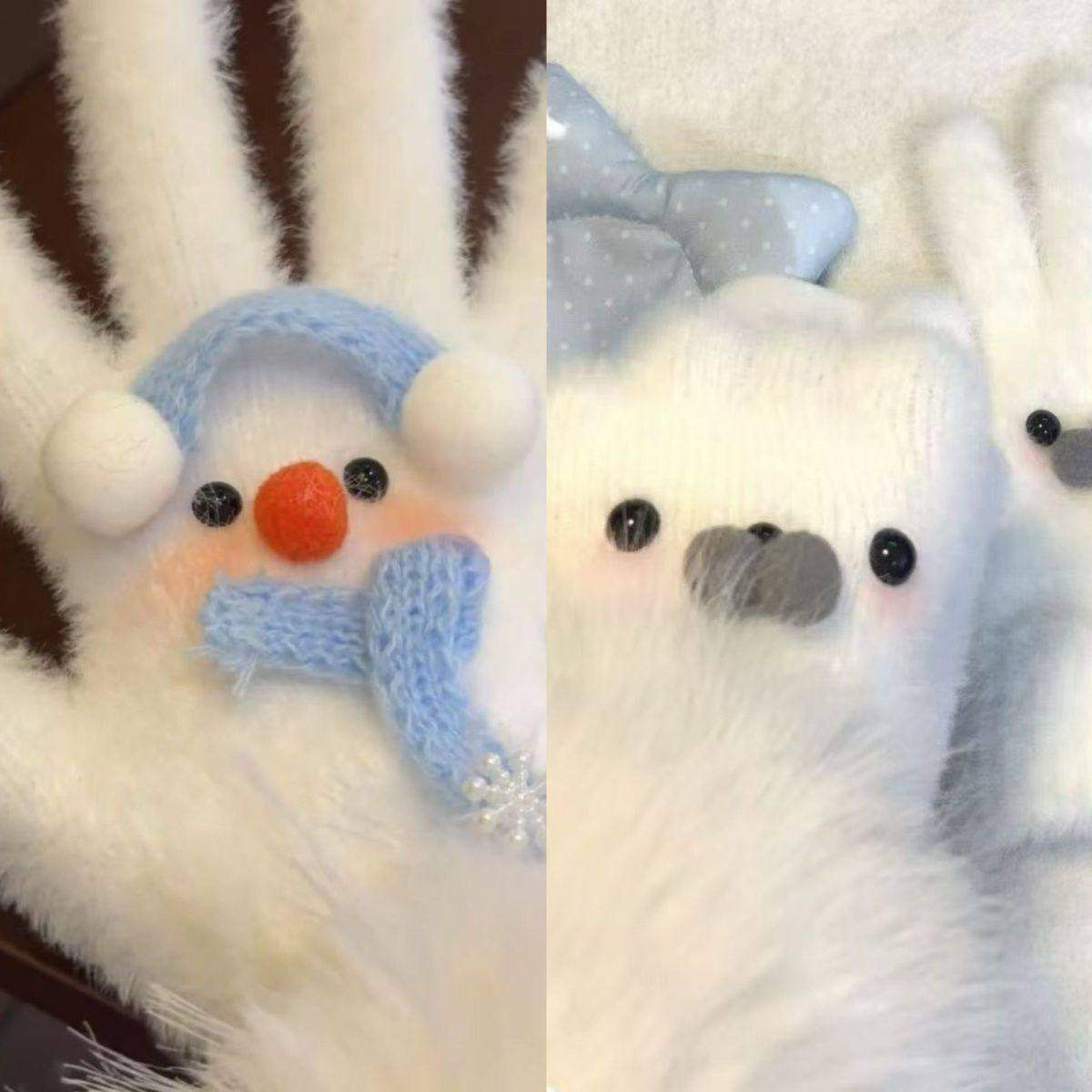 新款毛绒海豹手套可爱雪人兔耳朵冬季保暖防寒学生分指户外防冻