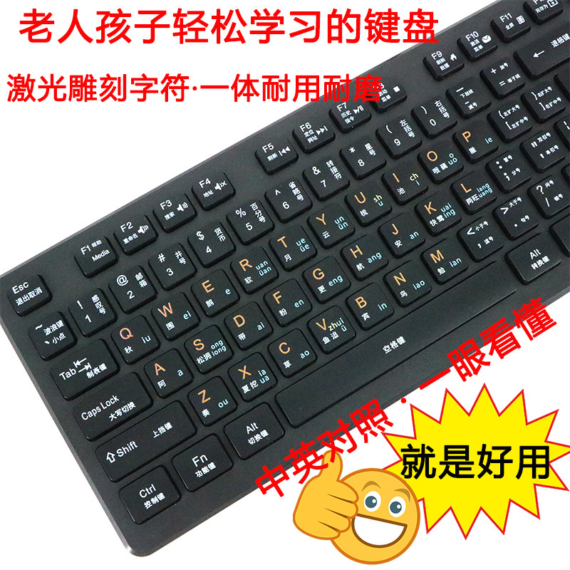 【激光雕刻】 全中文键盘字母大写练习打字台式机笔记本电脑USB