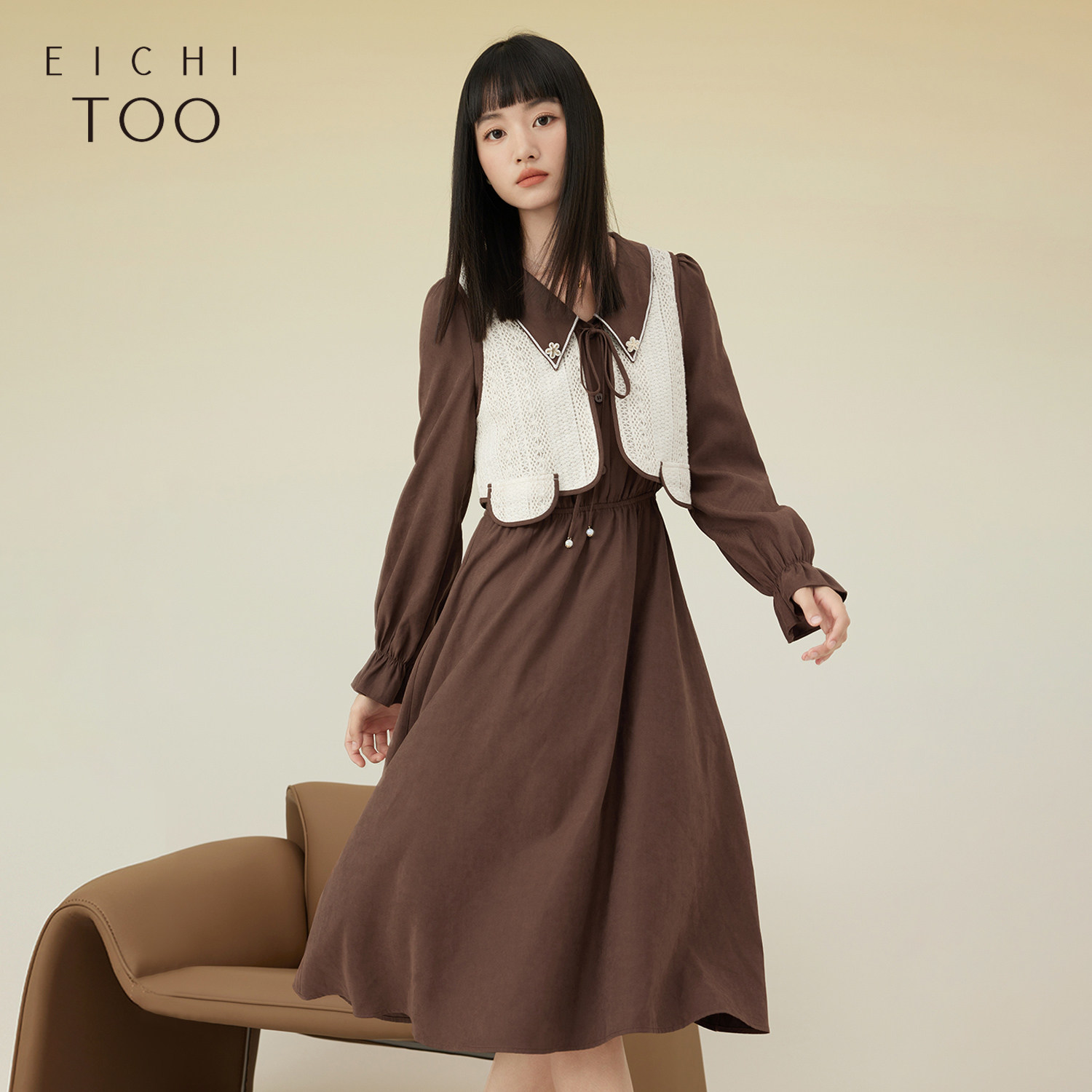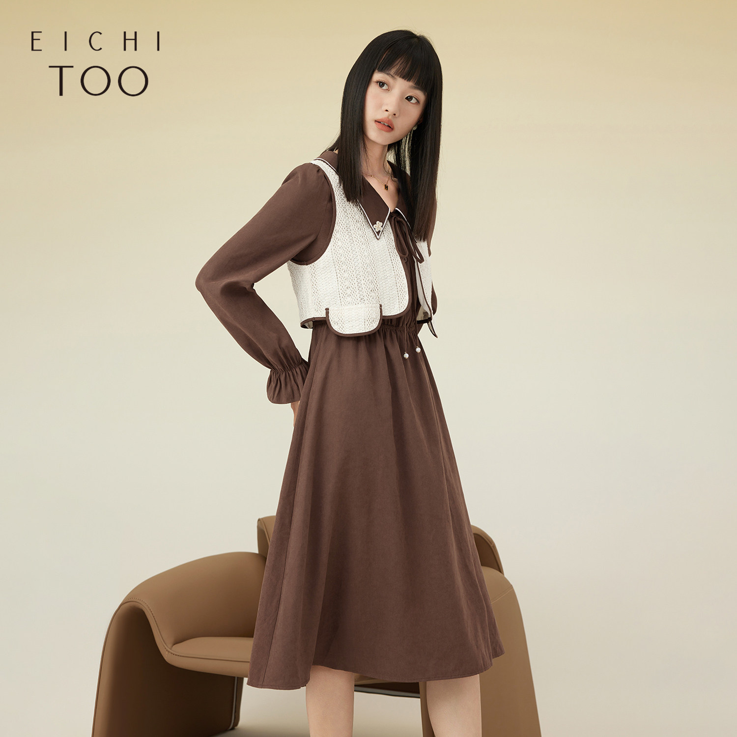 爱居兔秋季新款针织衫背心长袖连衣裙两件式套装裙