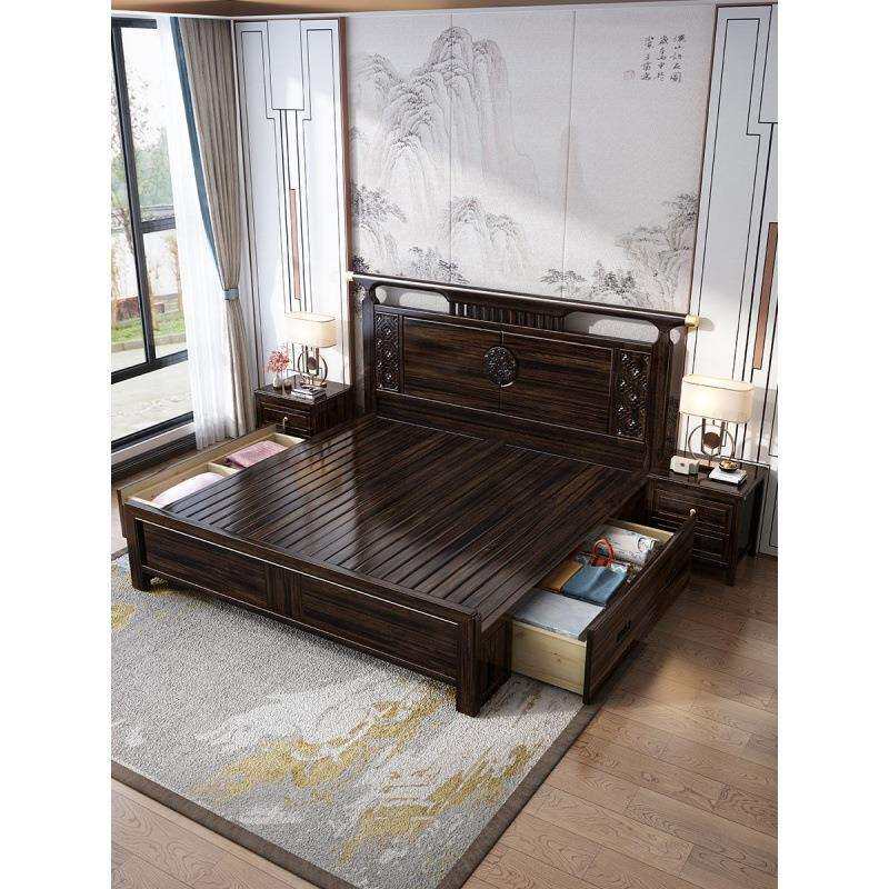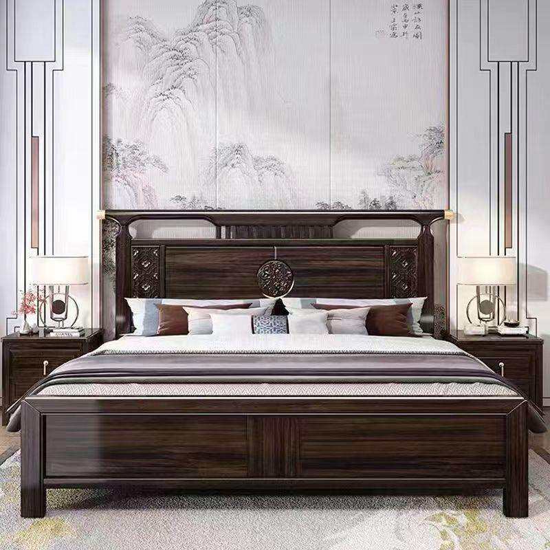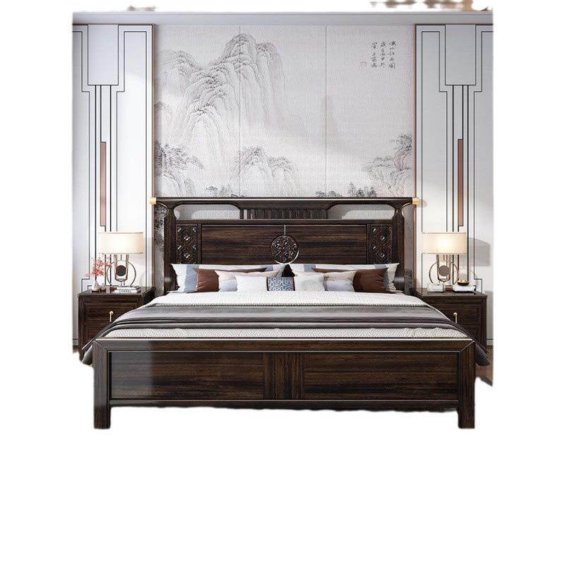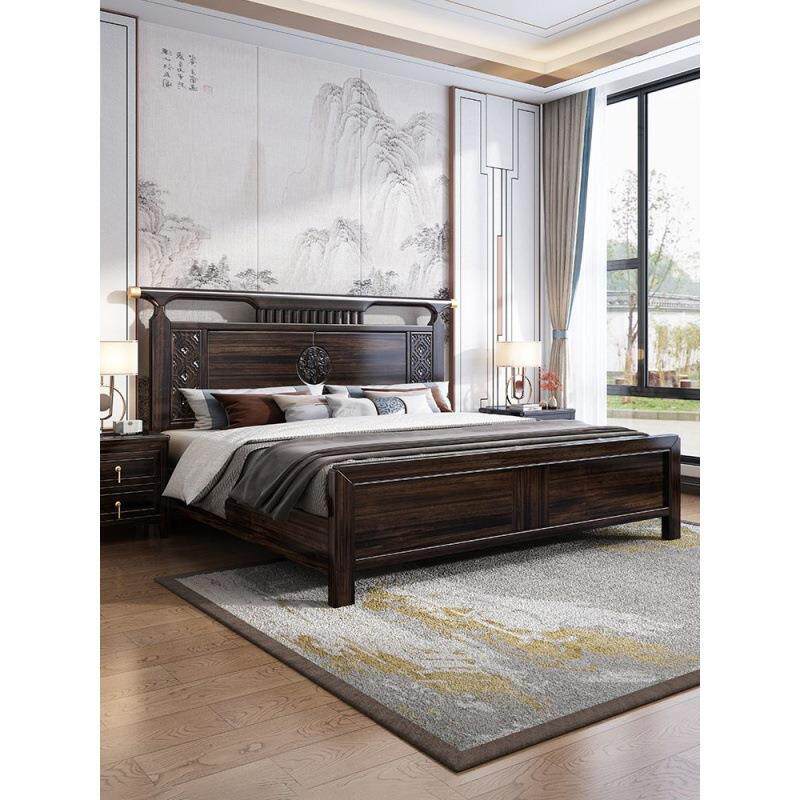 新中式实木床组合乌金木1.5m1.8m双人床中国风主卧婚床家用储物床