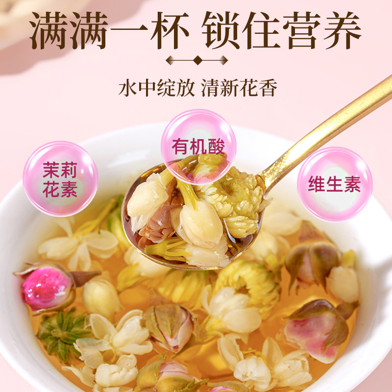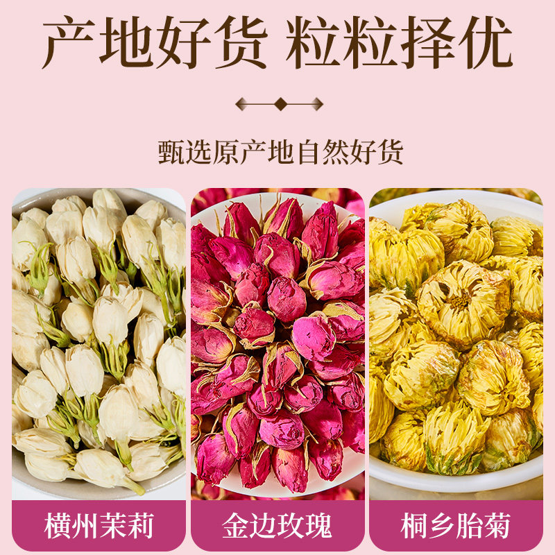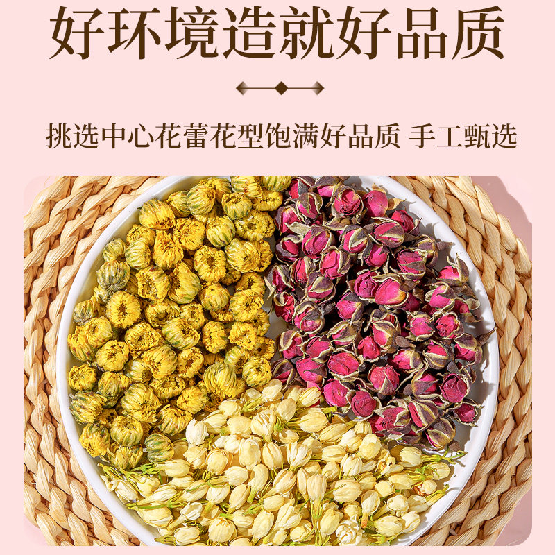 【女神三花茶】茉莉花玫瑰花菊花组合养生茶生气旰郁喝金银花胎菊