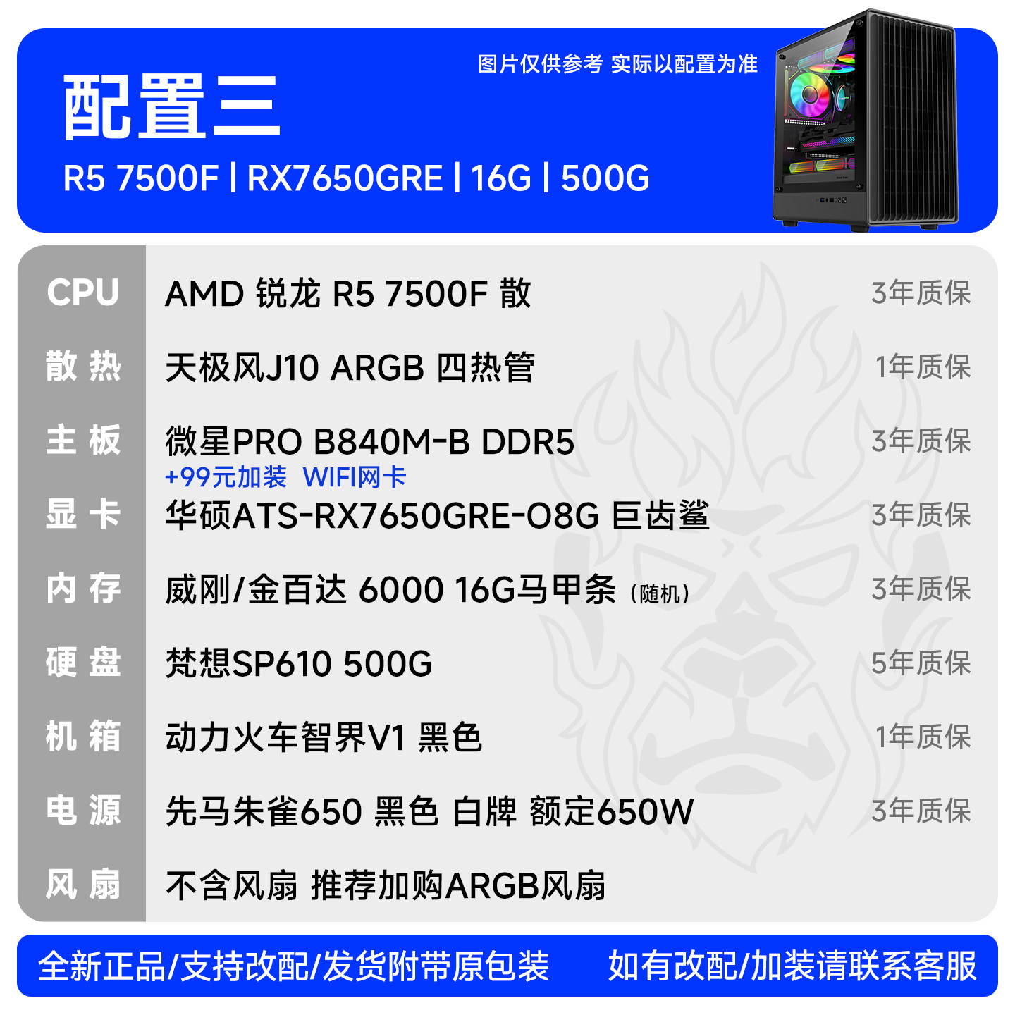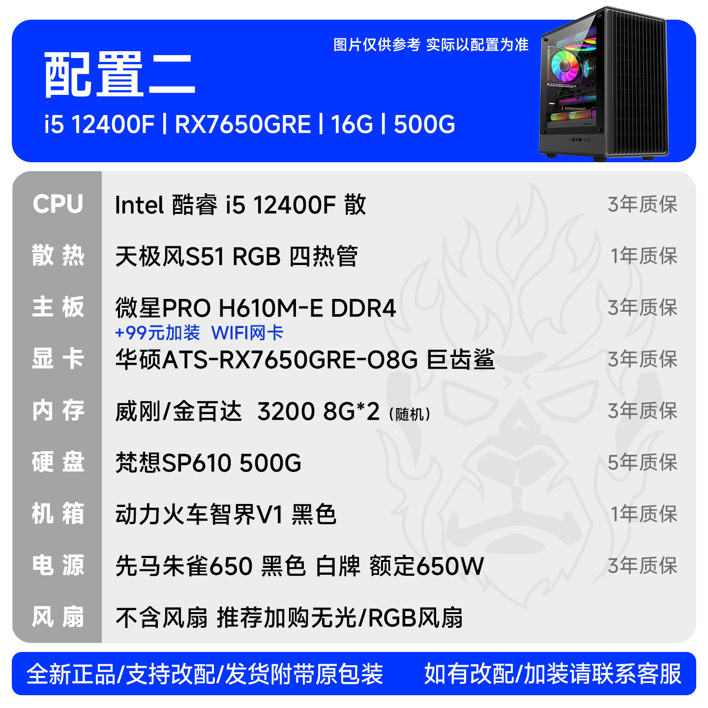 华硕ATS-RX7650GRE-O8G巨齿鲨游戏主机diy电脑装机猿自营电竞馆