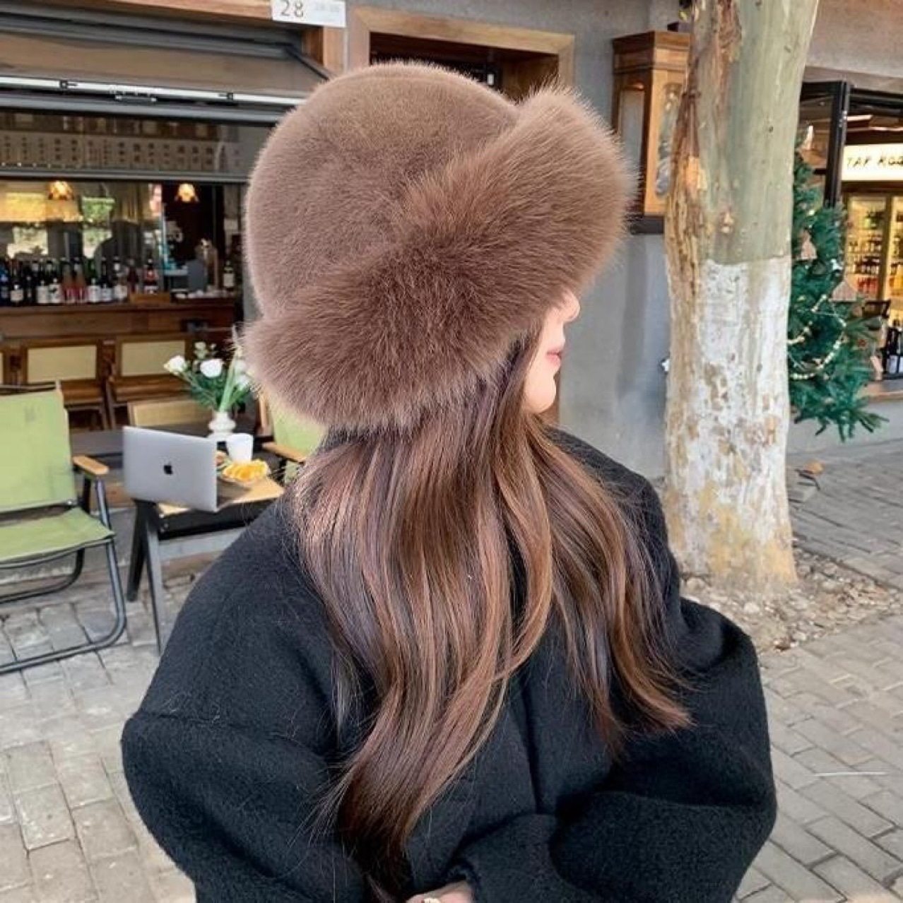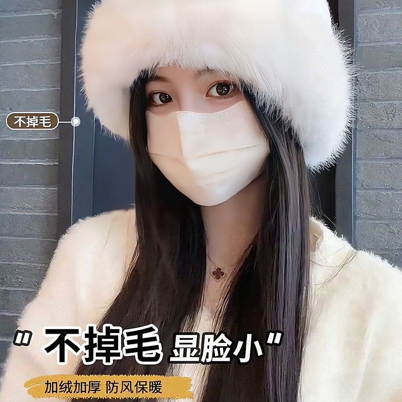 秋冬季毛绒防寒貂毛渔夫帽高级感显脸小保暖东北帽仿貂绒蒙古