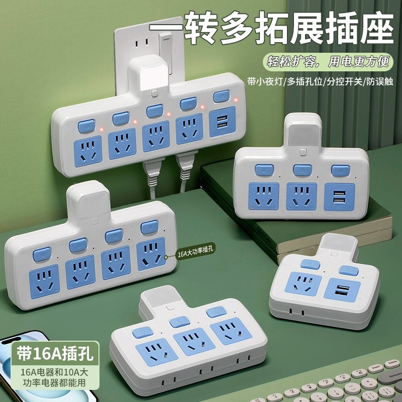 正品多功能插座转换器无线扩展插排面板USB夜灯一转多孔插头纯铜