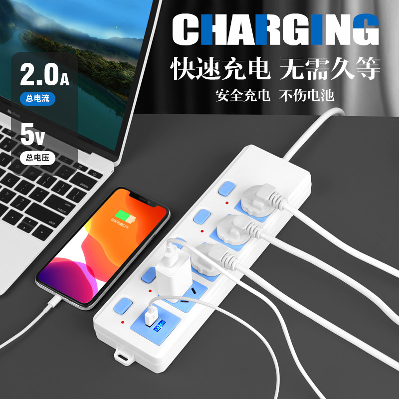 插排带线插线板插板多功能电源插座面板多孔家用2/3/5/10米长线
