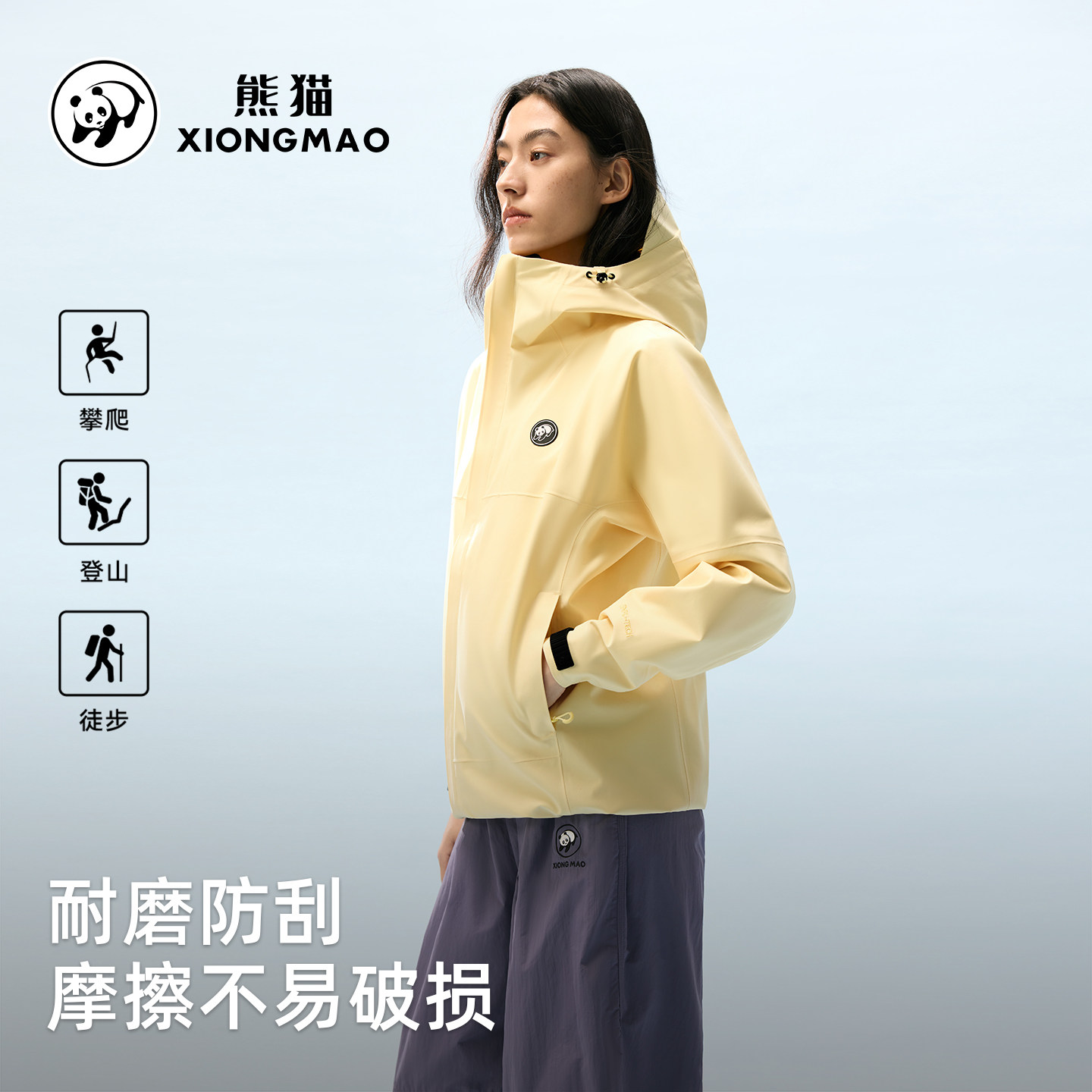 张予曦同款雨壳熊猫冲锋衣外套女26新款耐磨户外防水风徒步登山服