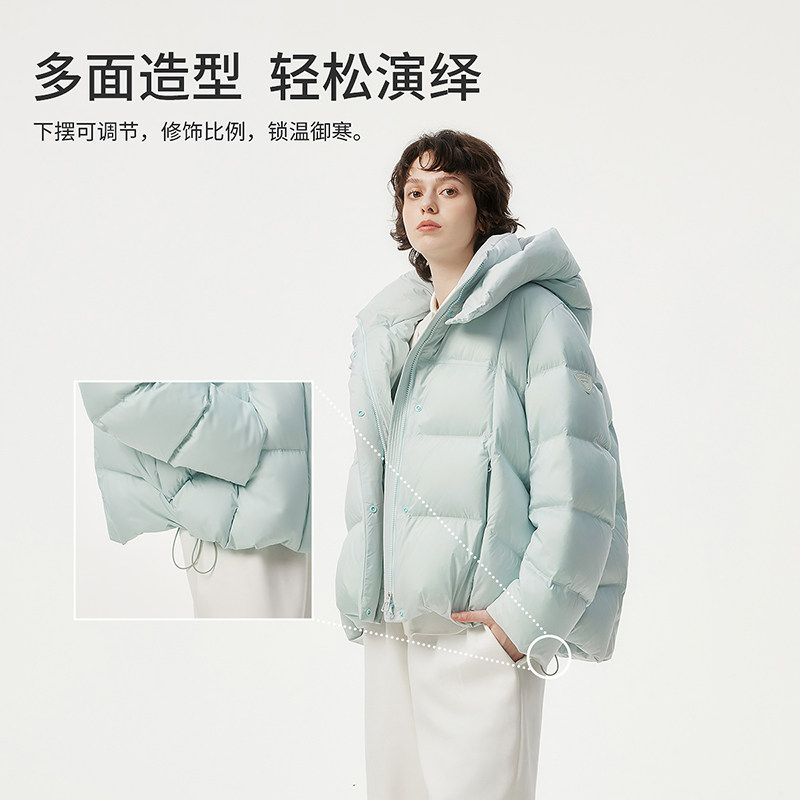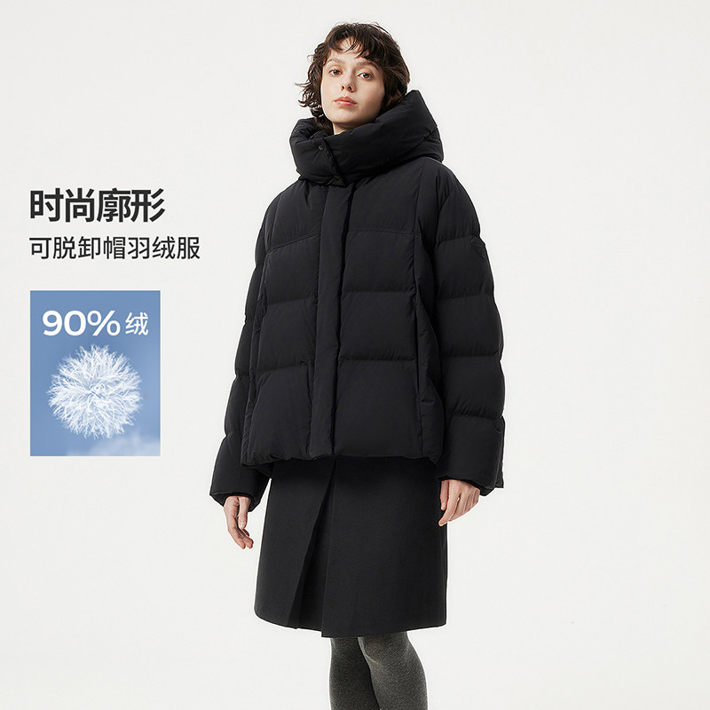 坦博尔【高充绒量】冬季羽绒服女装短款可脱卸帽时尚廓形加厚外套