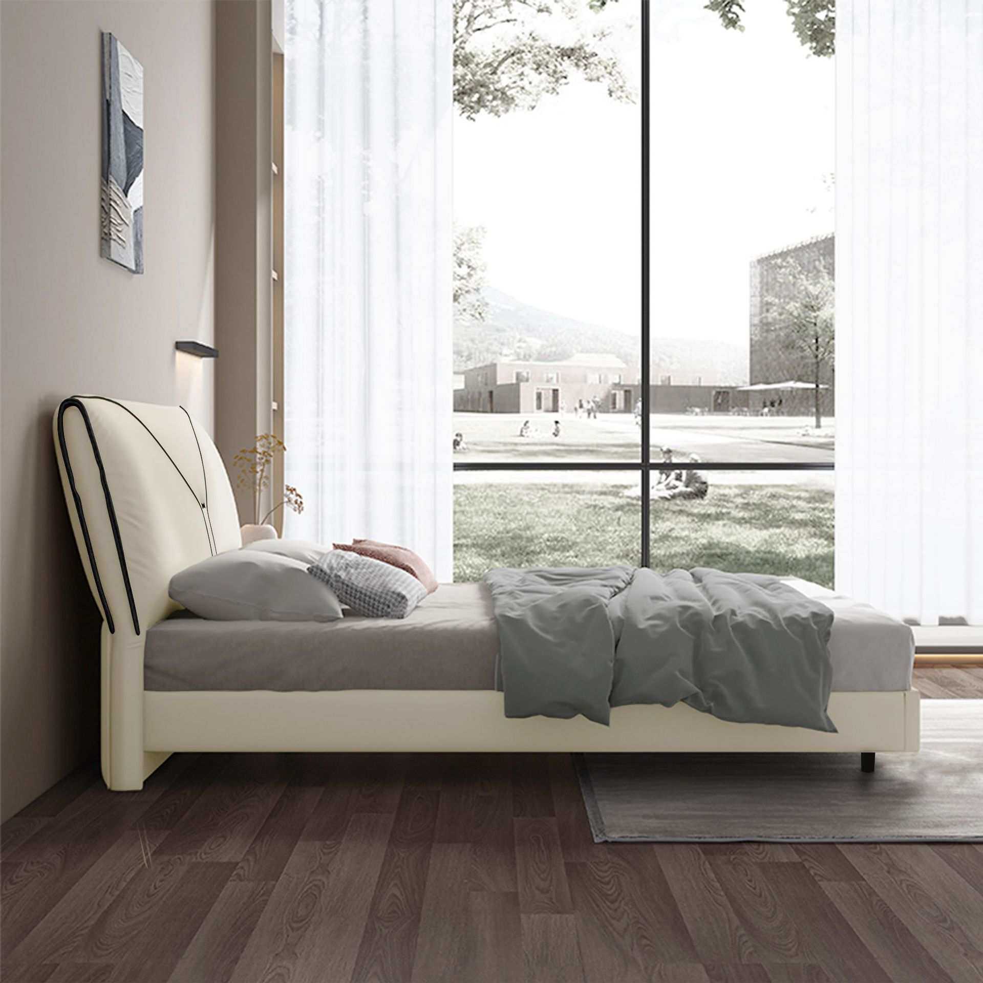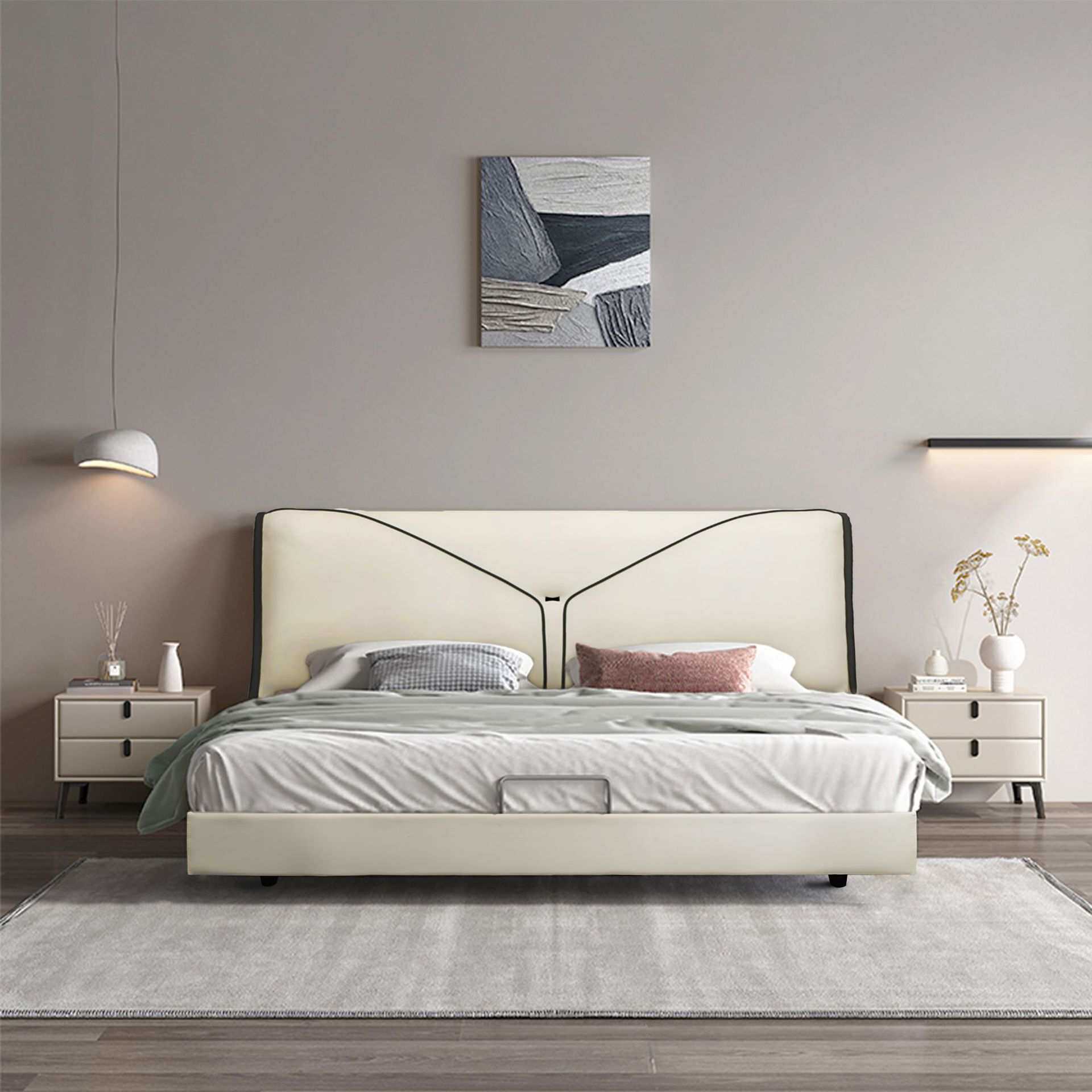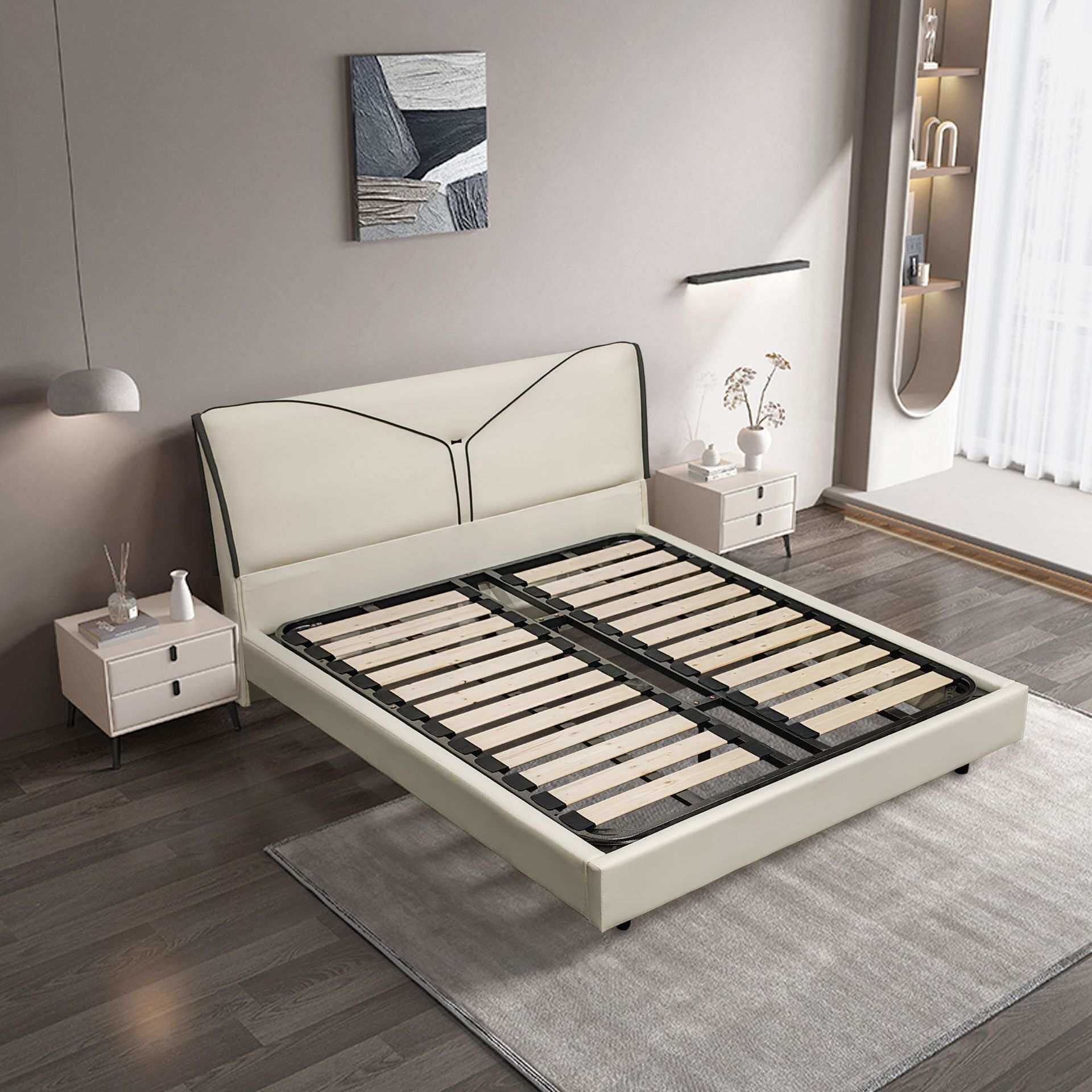轻奢皮艺软床1.8米主卧猫抓皮床现代简约出租房民宿软包双人床架