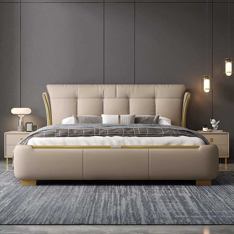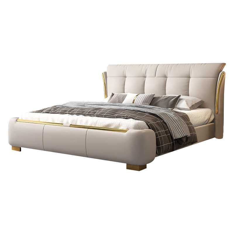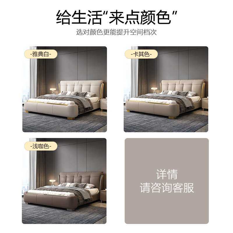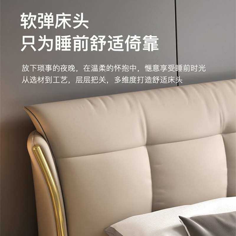 软包床纳帕皮双人婚床可储物轻奢家用卧室1.8m实木皮艺床榻榻米床