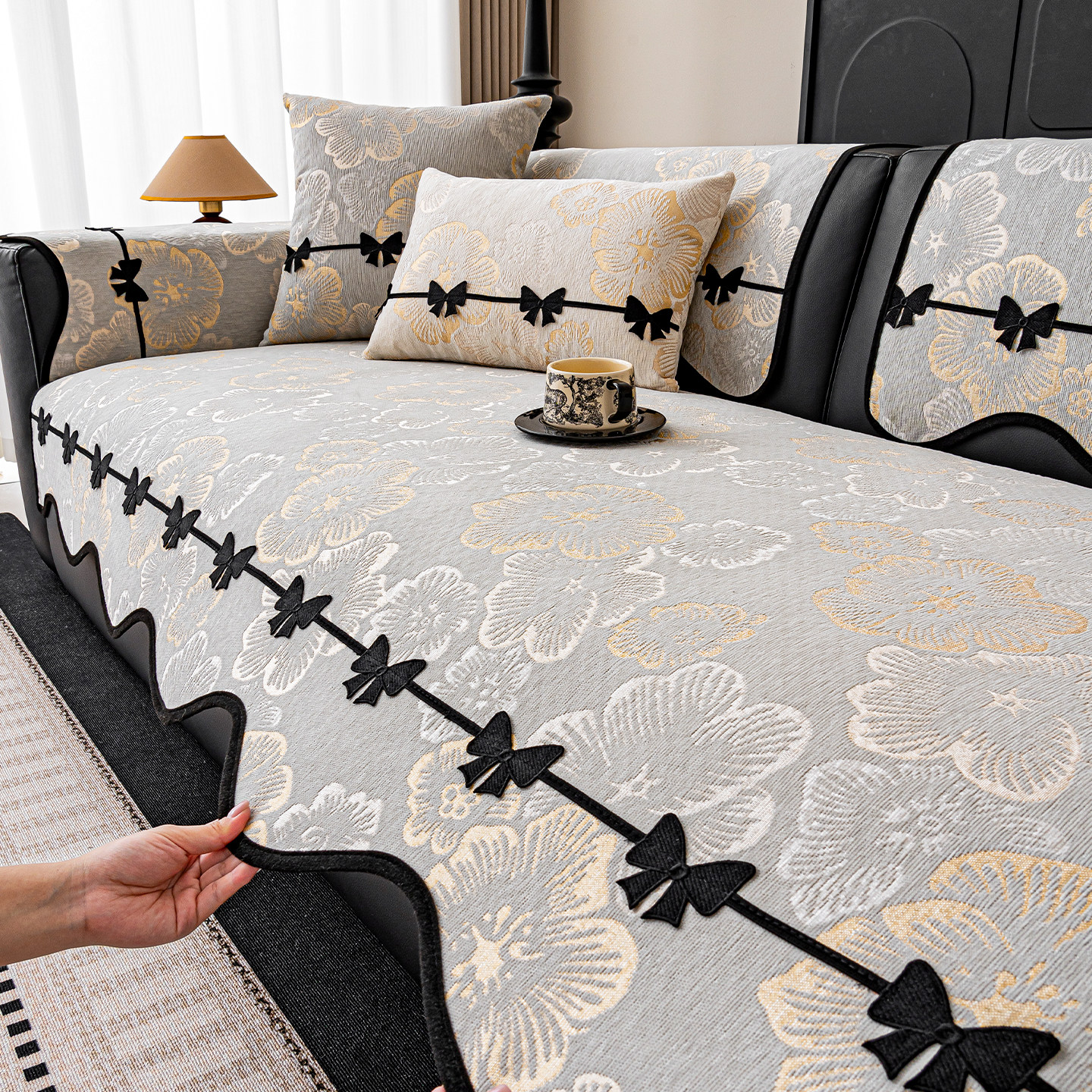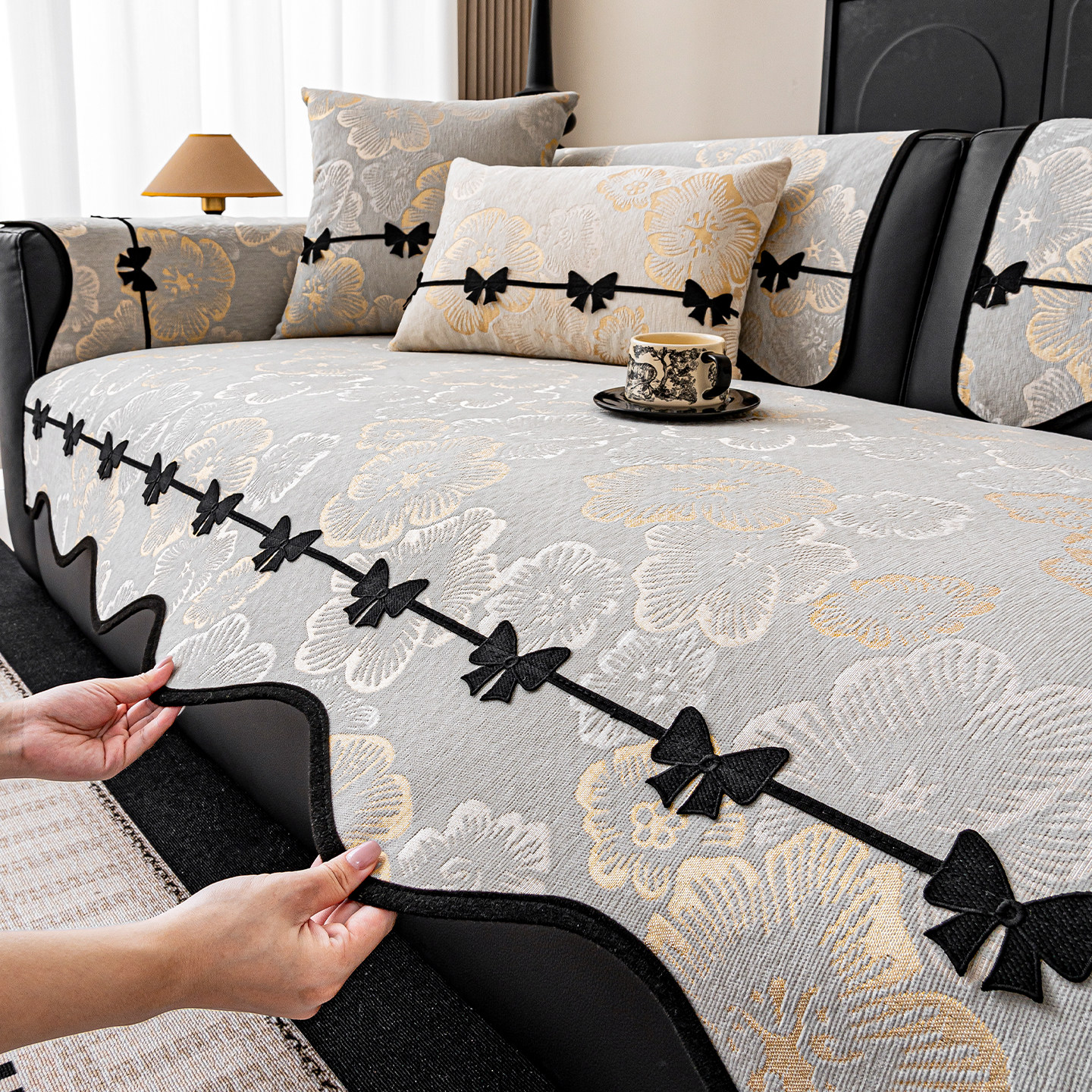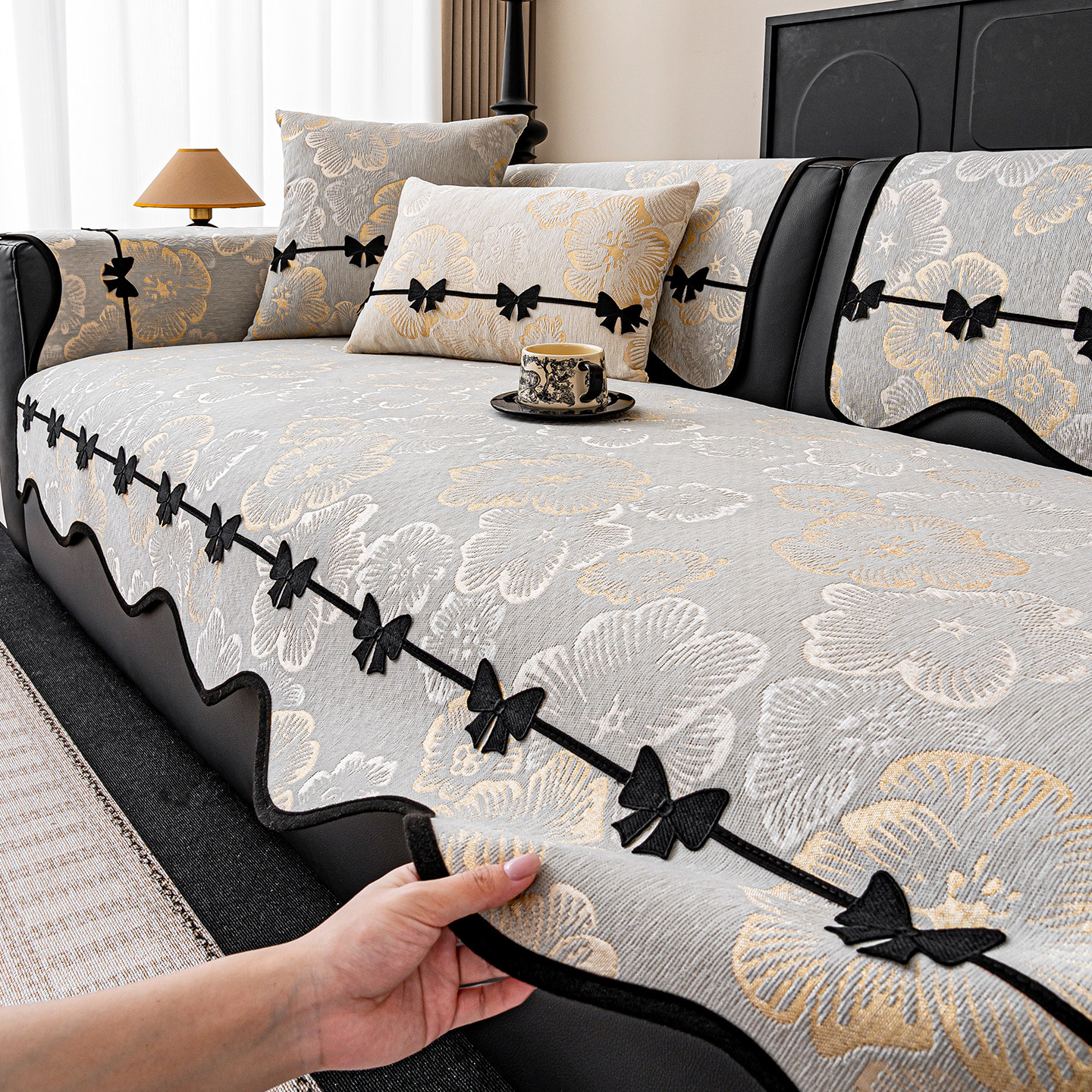雪尼尔沙发垫四季通用可拆洗防滑防猫抓简约现代三座一贵妃沙发套