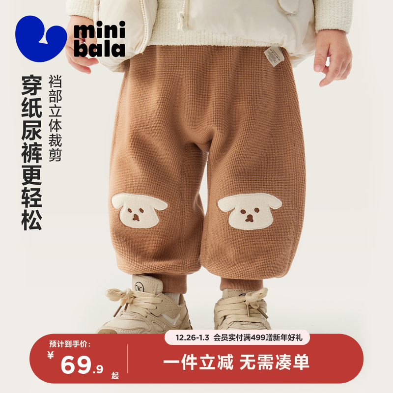 迷你巴拉巴拉男女童裤子保暖内里加绒不勒肚2025冬装新款宽松PP裤