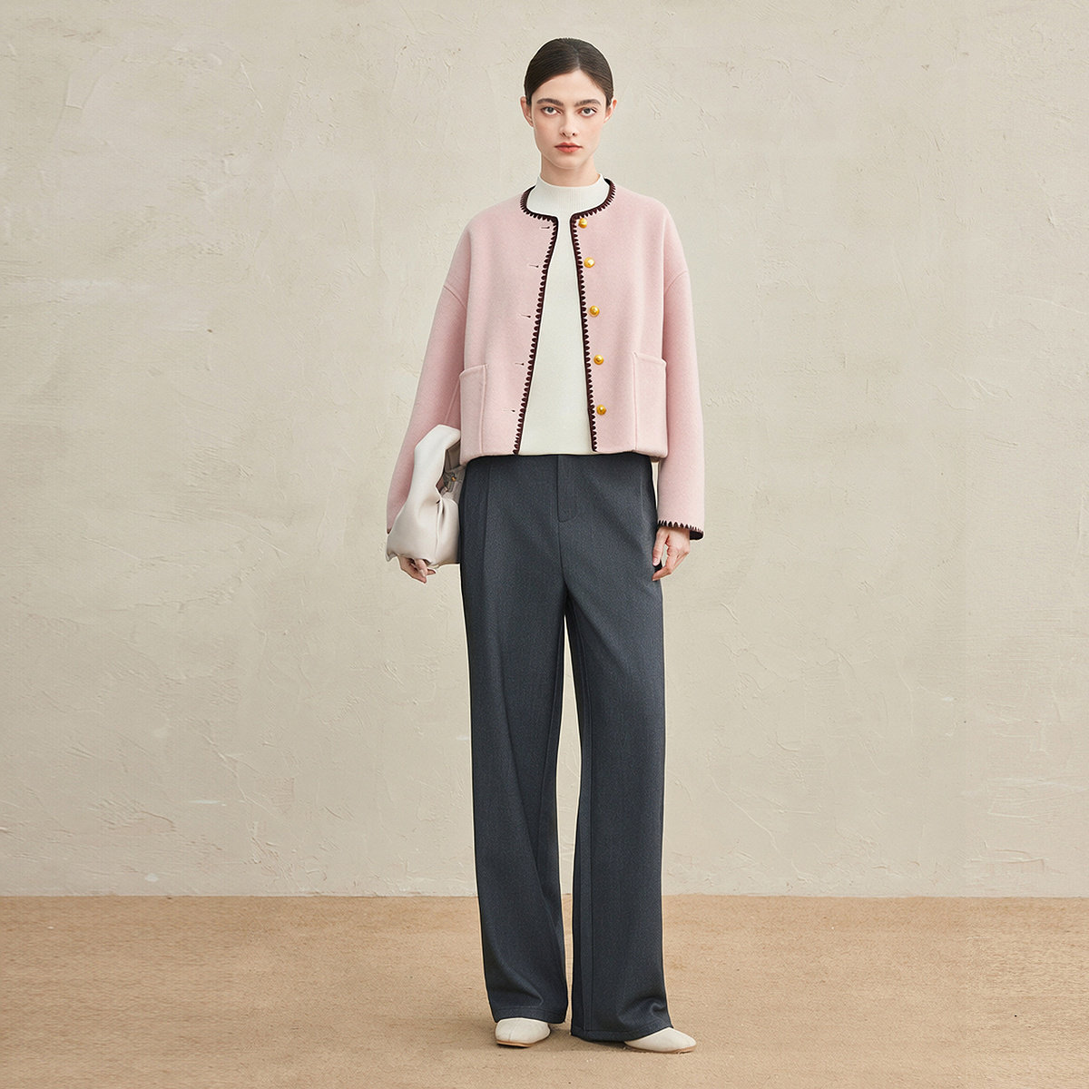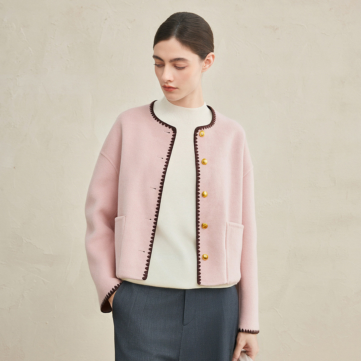 FINITY菲妮迪毛呢外套2026年春季新款小香风短款双面呢羊绒大衣女