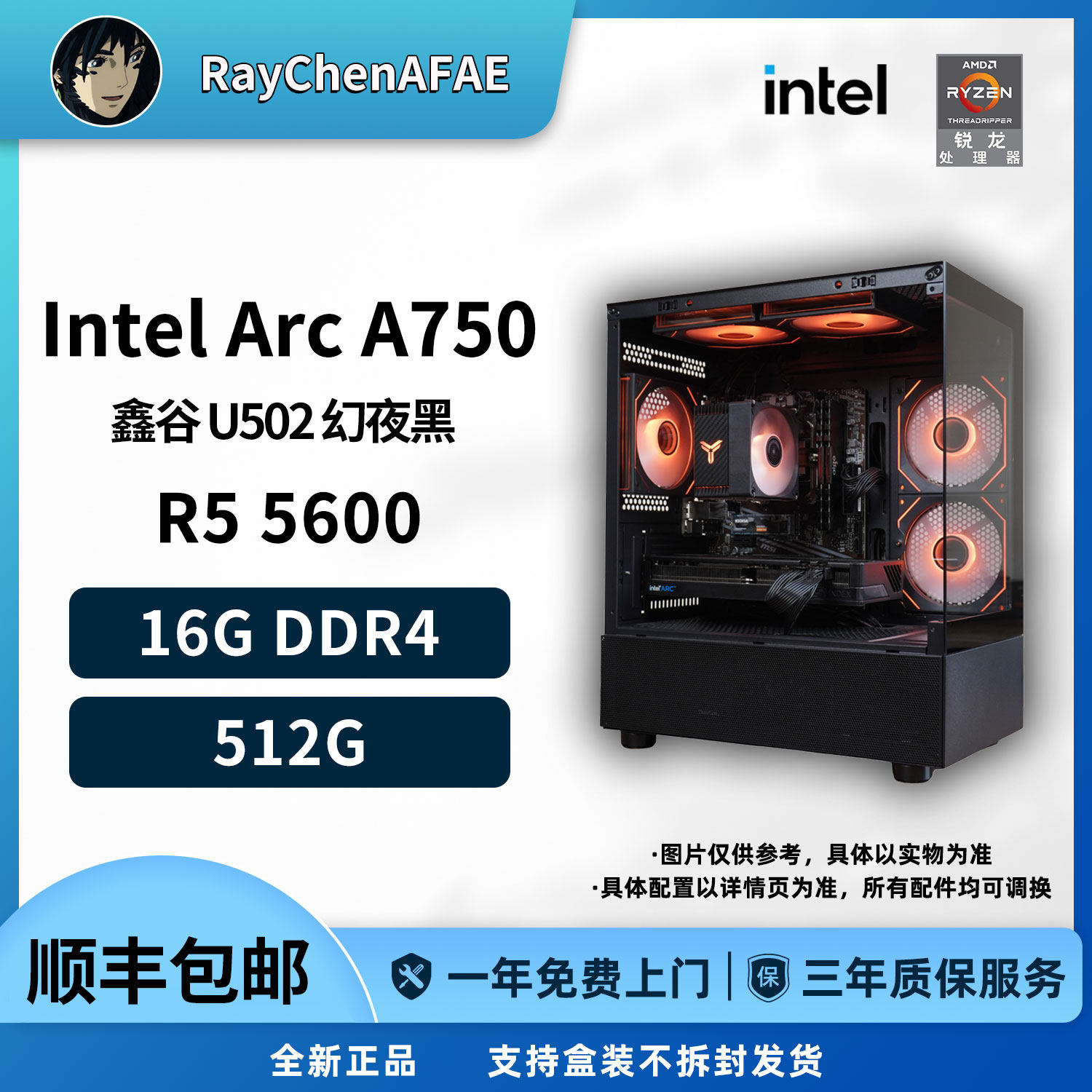 Intel Arc A750+5600高颜值海景房高性能DIY游戏生产力电脑主机