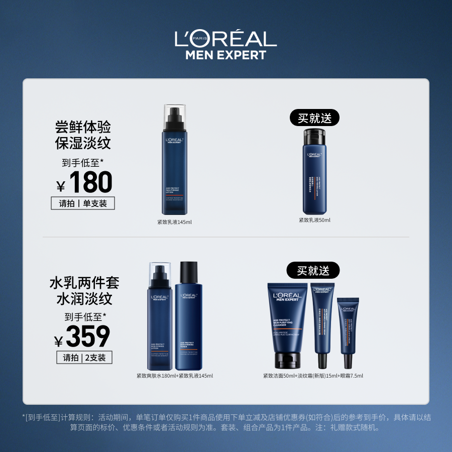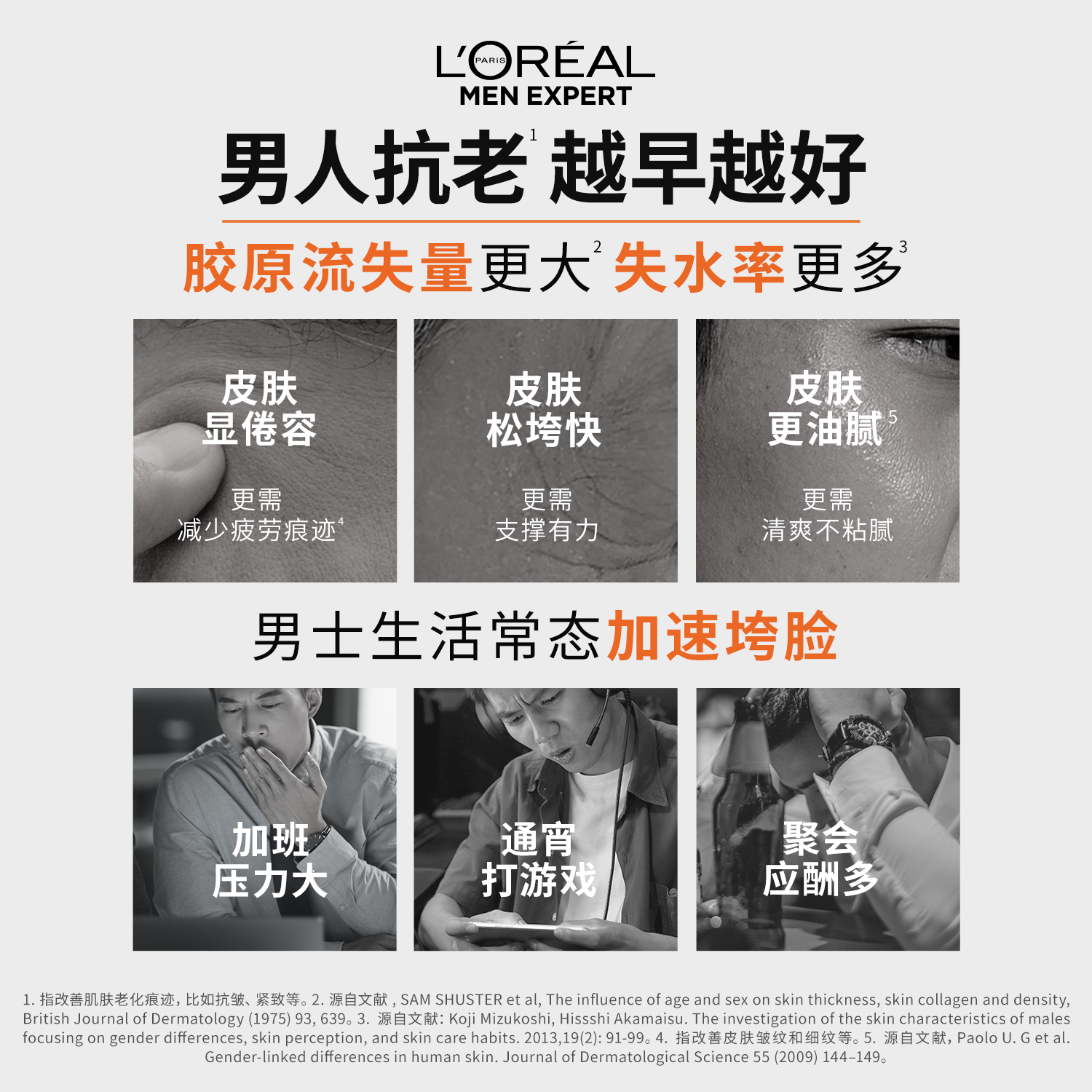 欧莱雅男士青春肌源淡纹乳液面霜紧致抗老抗皱补水保湿控油护肤品