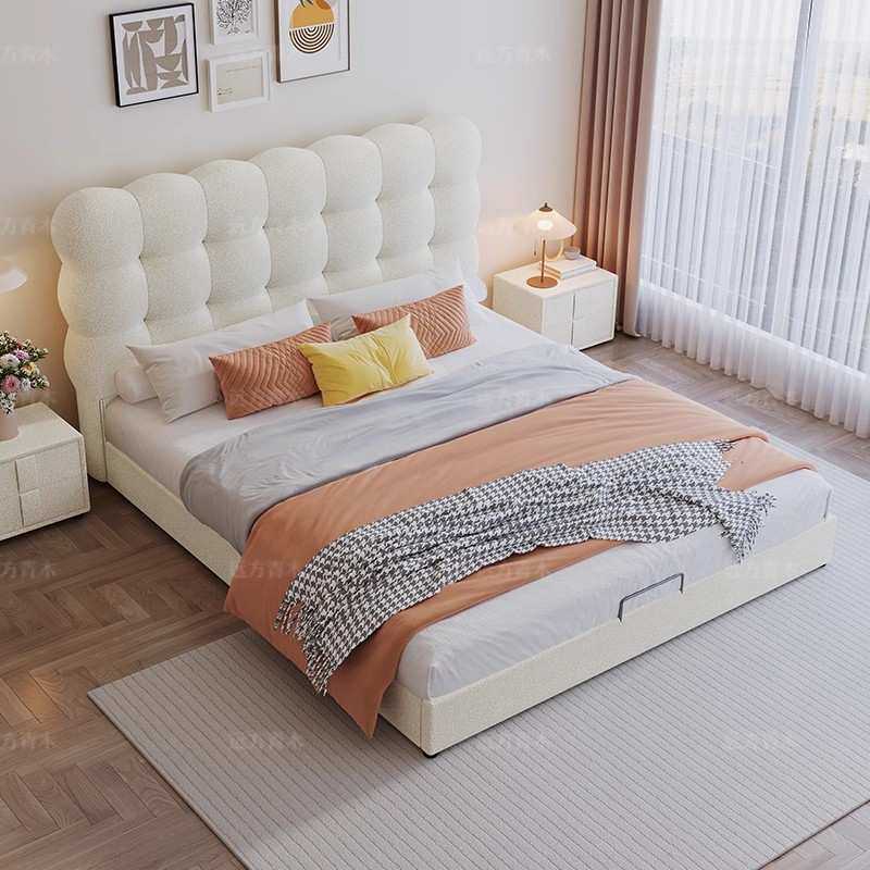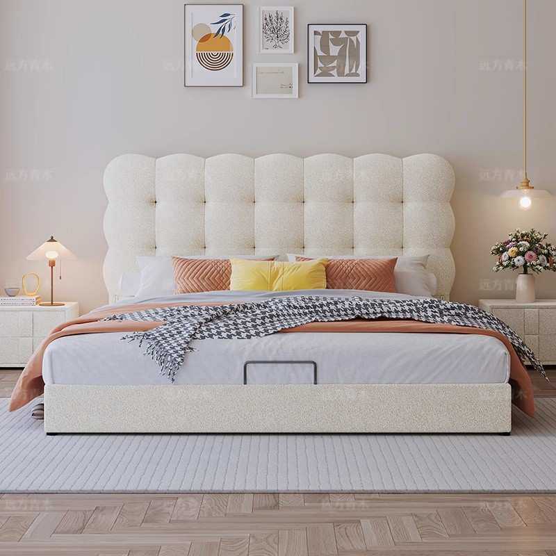 法式奶油风泡泡床女孩公主床泰迪绒床现代简约意式主卧布艺泡芙床