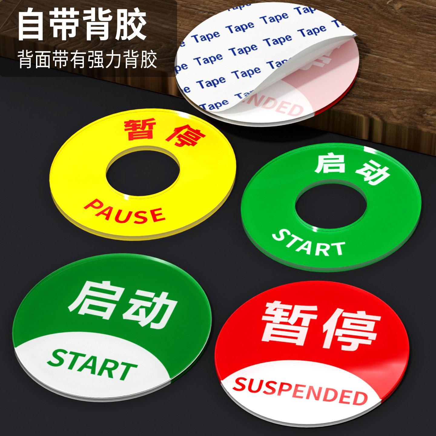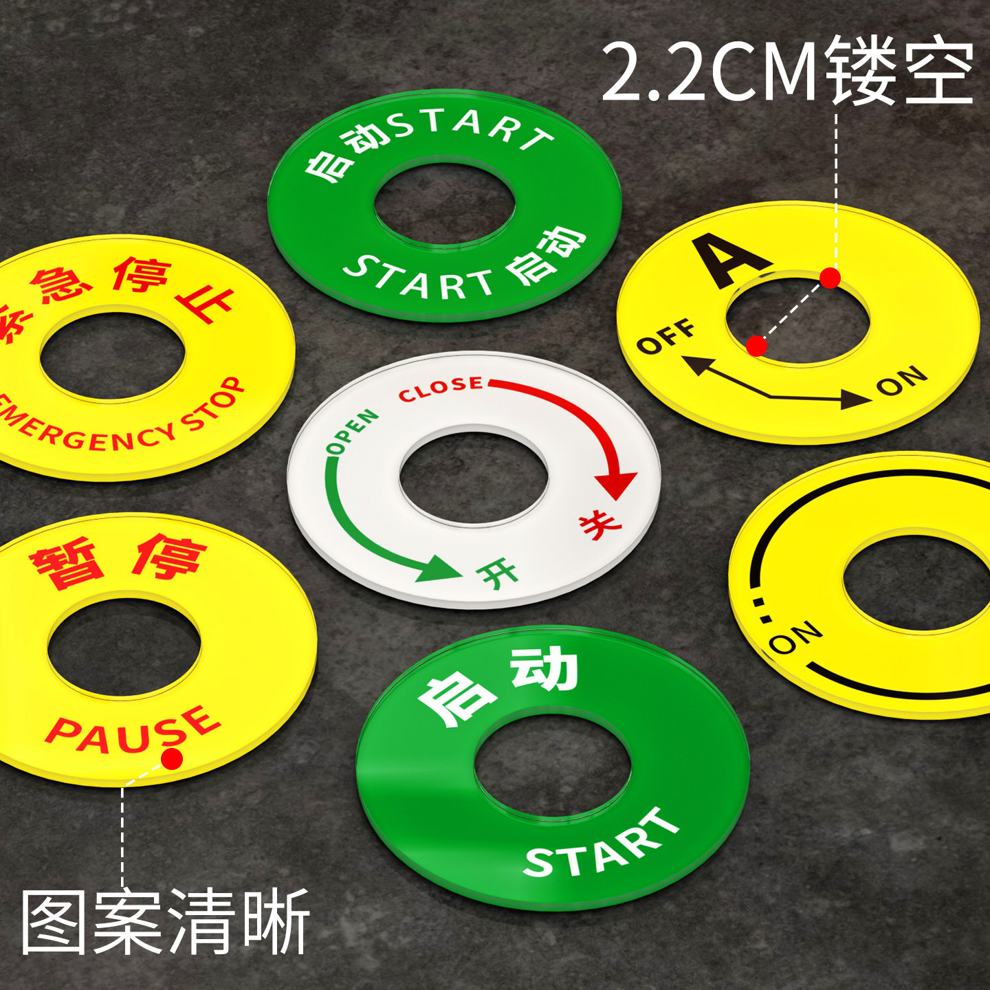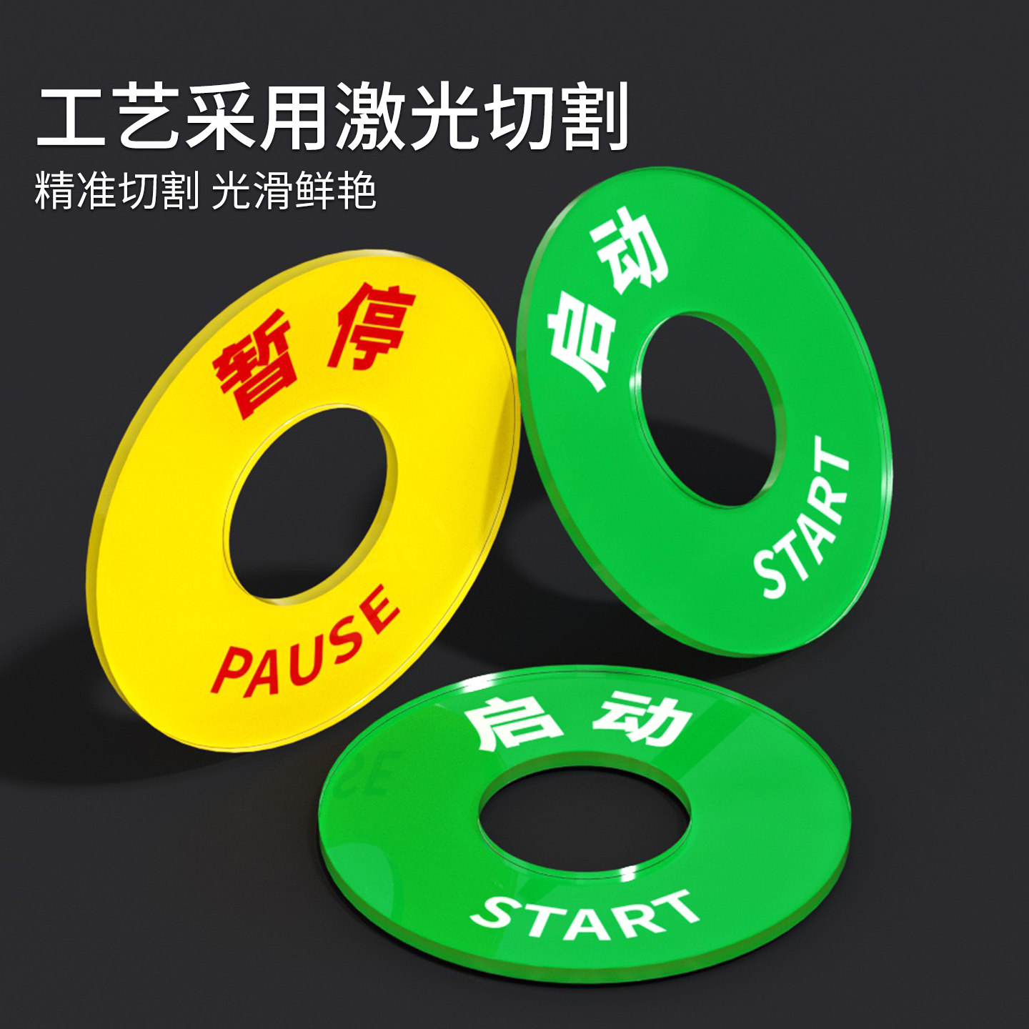 亚克力开关暂停启动机械设备标识牌圆形按钮标签贴紧急停止开关安全警示贴定制