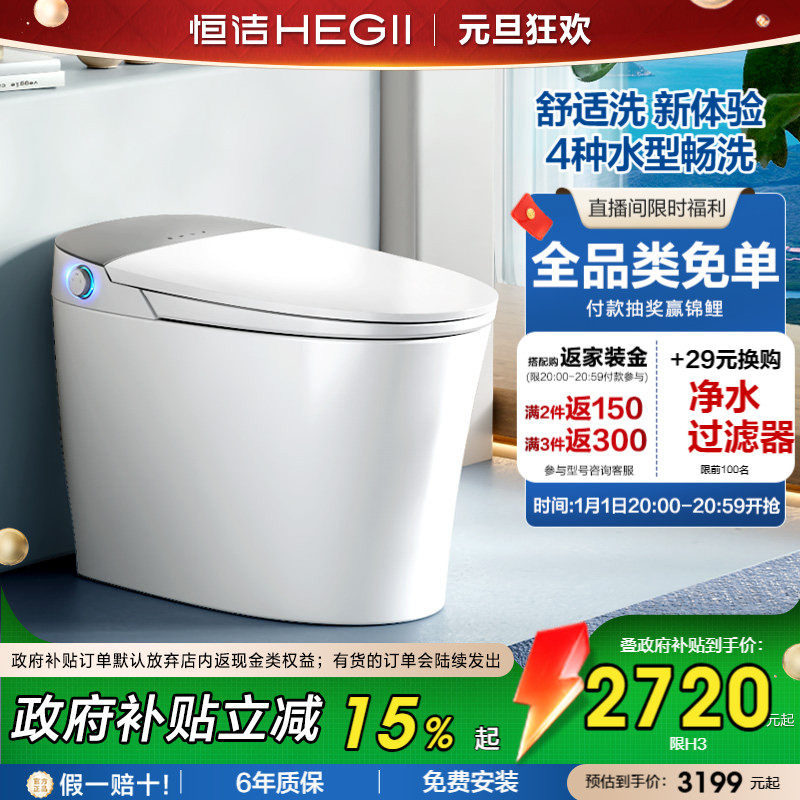 恒洁智能马桶全自动一体式坐便器家用零压无水压限制舒适洗H3