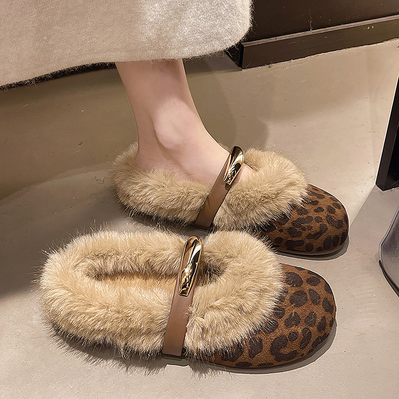 水貂绒包头半拖鞋女外穿2025新款秋冬美拉德一字带加绒防滑棉拖鞋