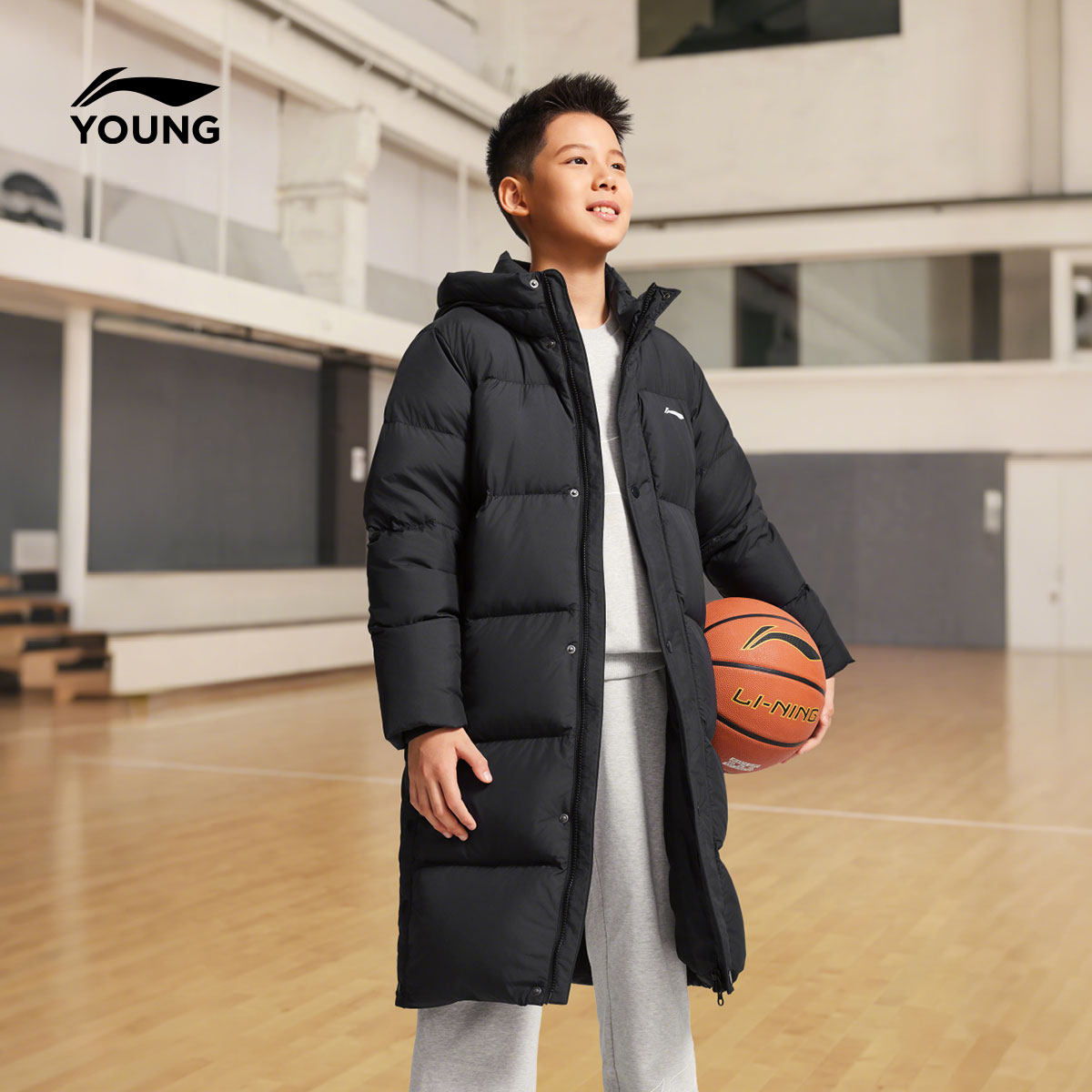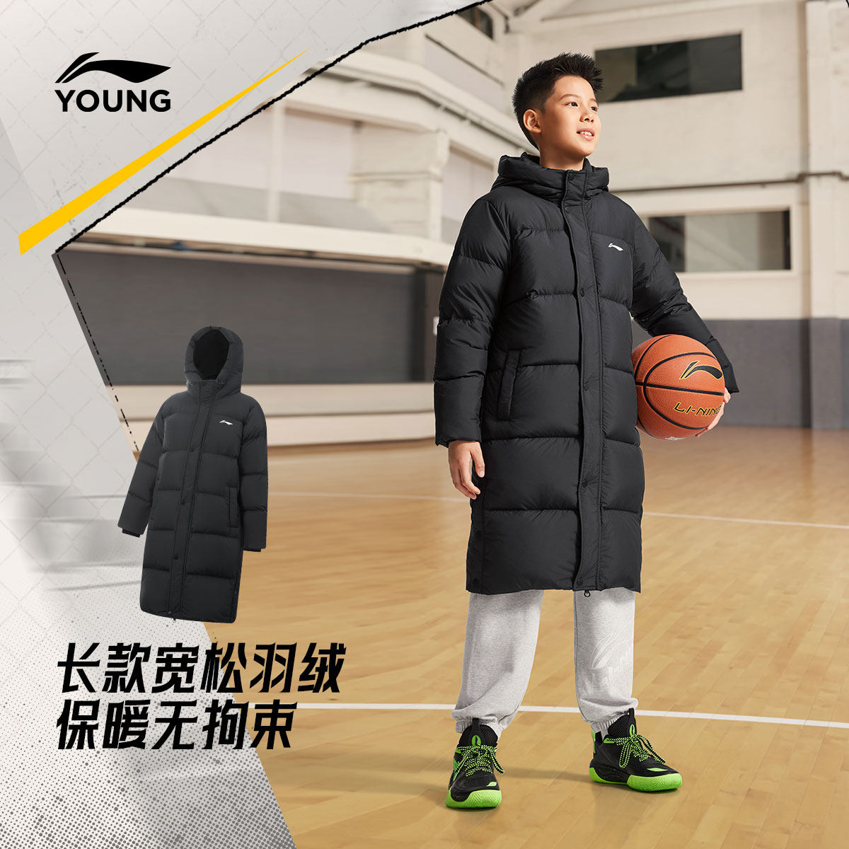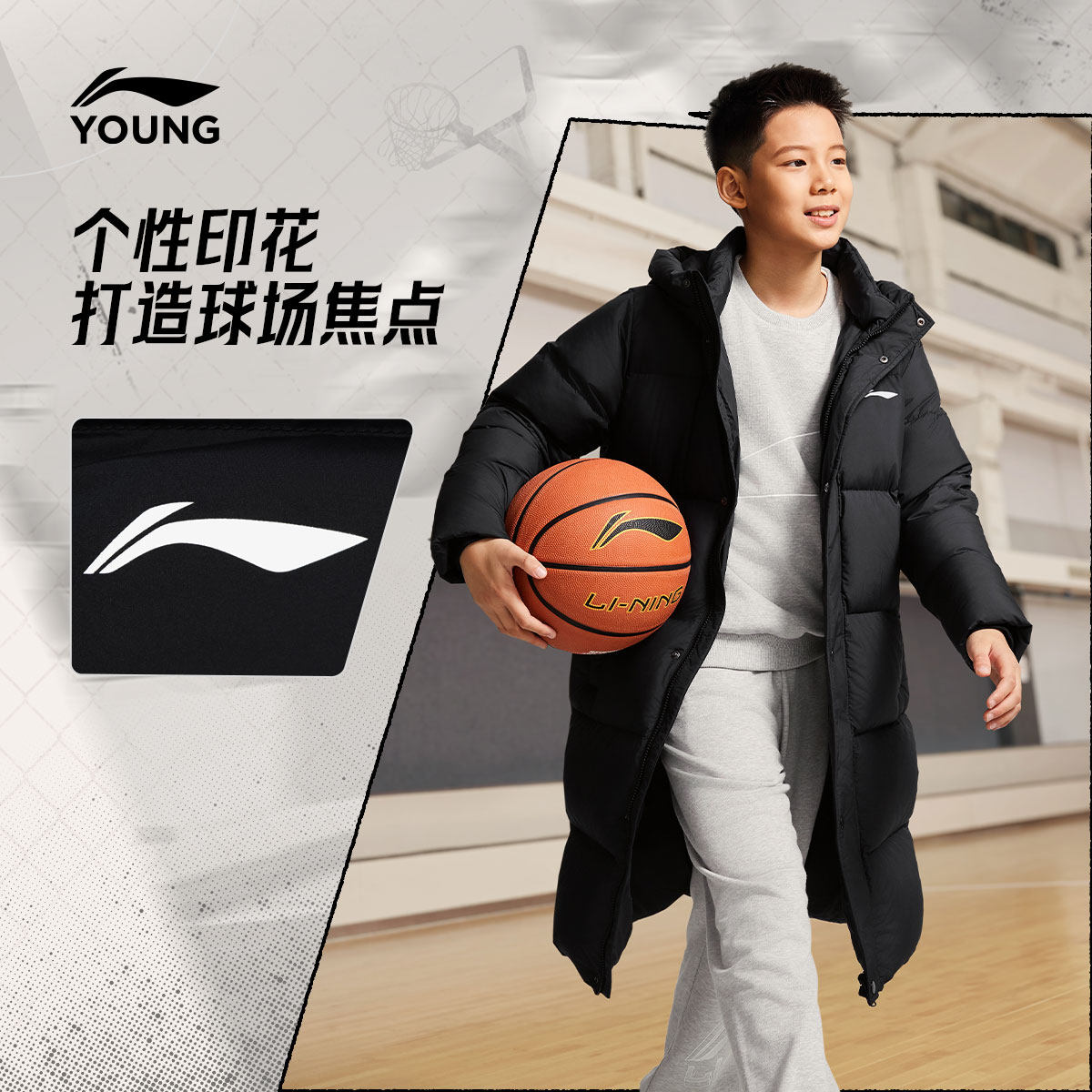 李宁童装长款长羽绒服男女小大童篮球系列上衣连帽春季童装