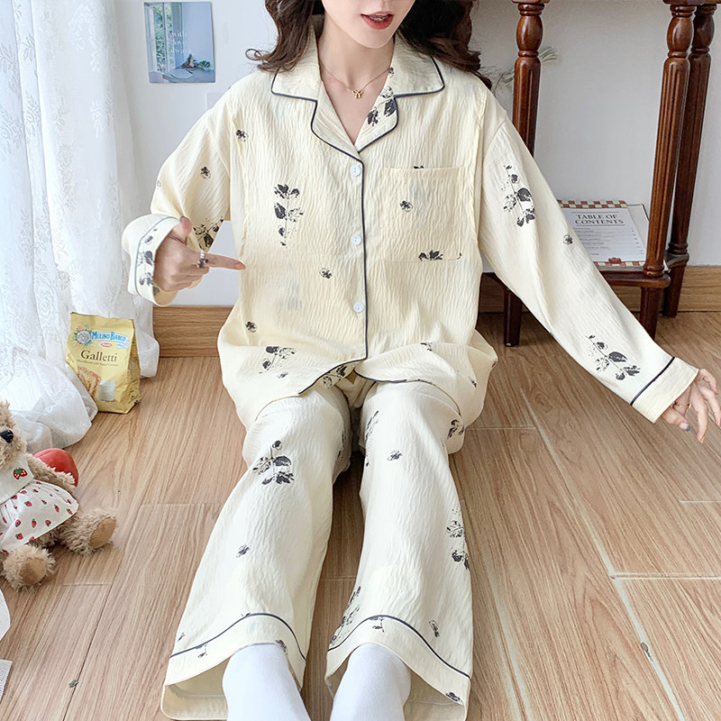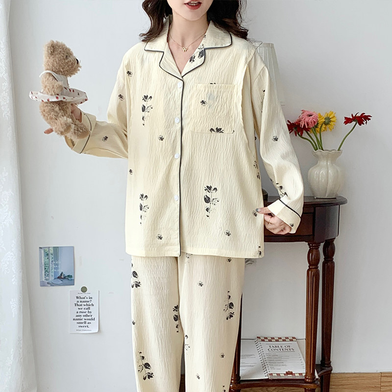 带胸垫奶香风纯棉月子服春秋季产后产妇孕妇睡衣秋冬款哺乳喂奶衣