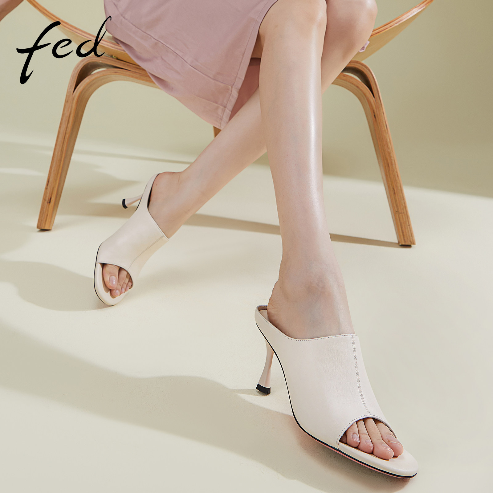 fed外穿羊皮拖鞋夏季新款女鞋高跟凉拖鞋法式凉鞋女D0415-YAC926