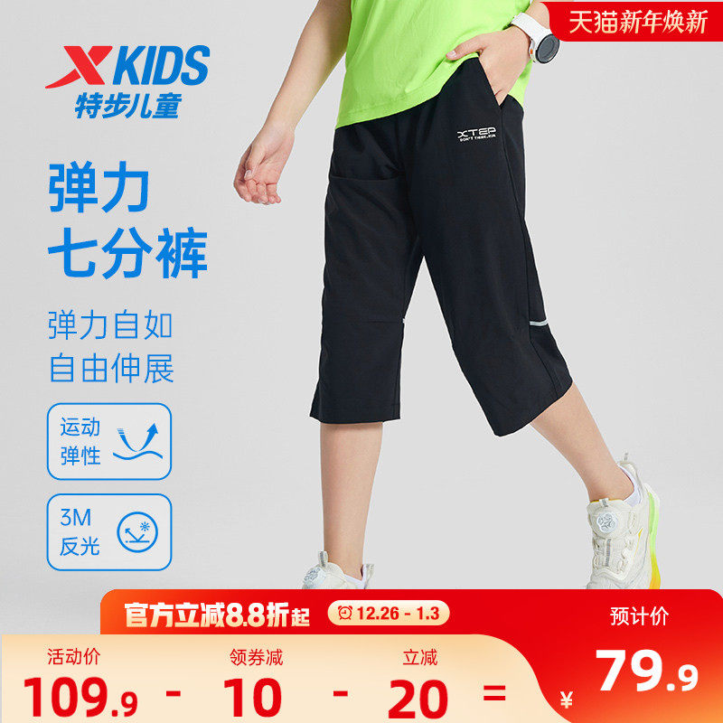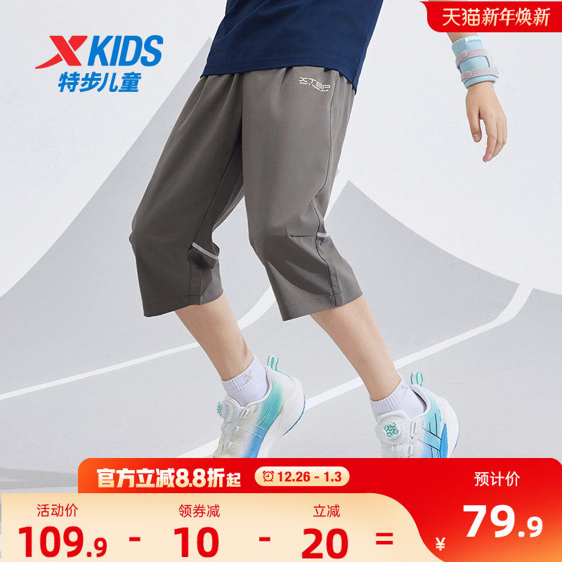 特步童装儿童速干七分裤夏季新款男童中裤大童透气跑步裤运动裤子
