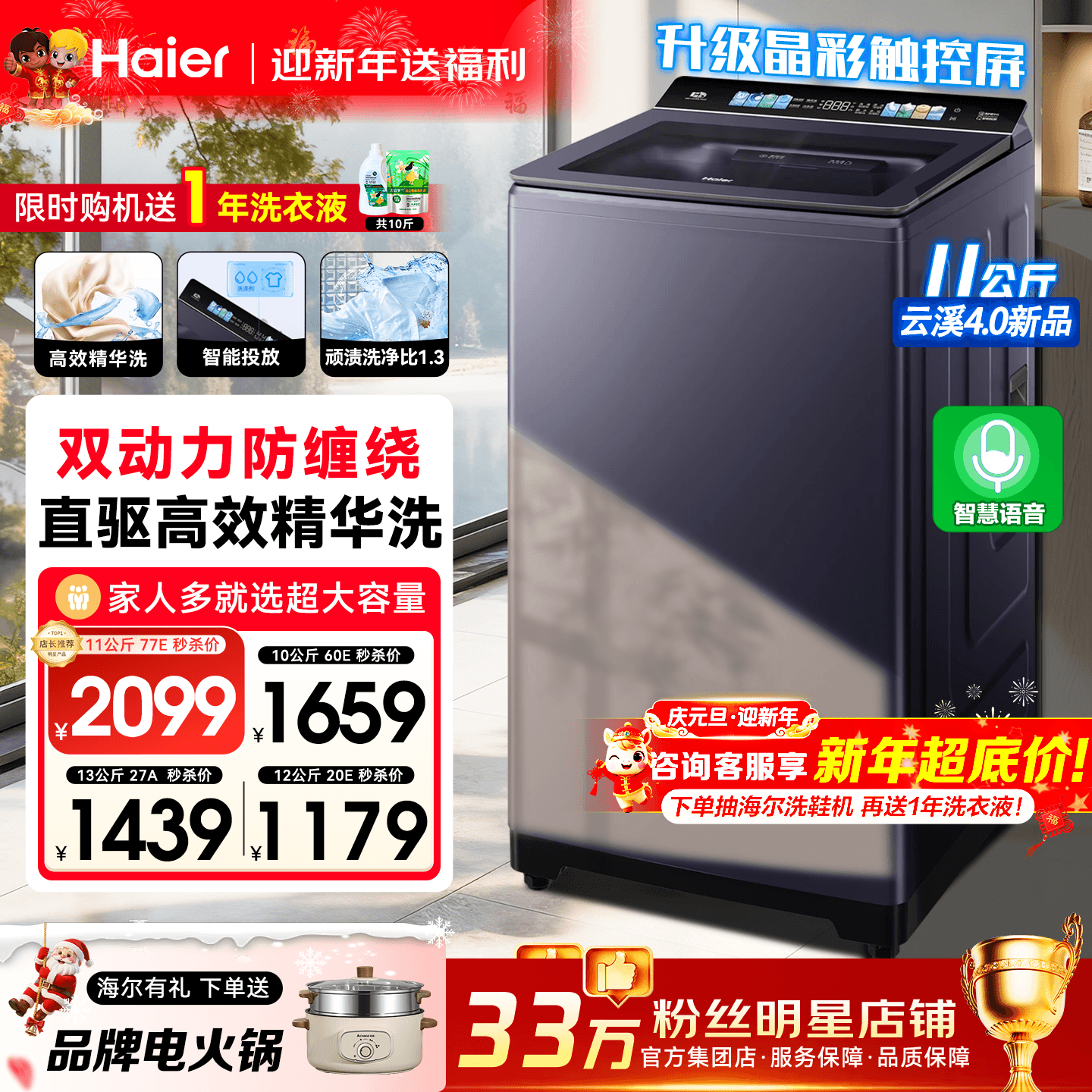 [云溪4.0]海尔洗衣机77E防缠绕家用全自动11/10公斤双动力波轮60E
