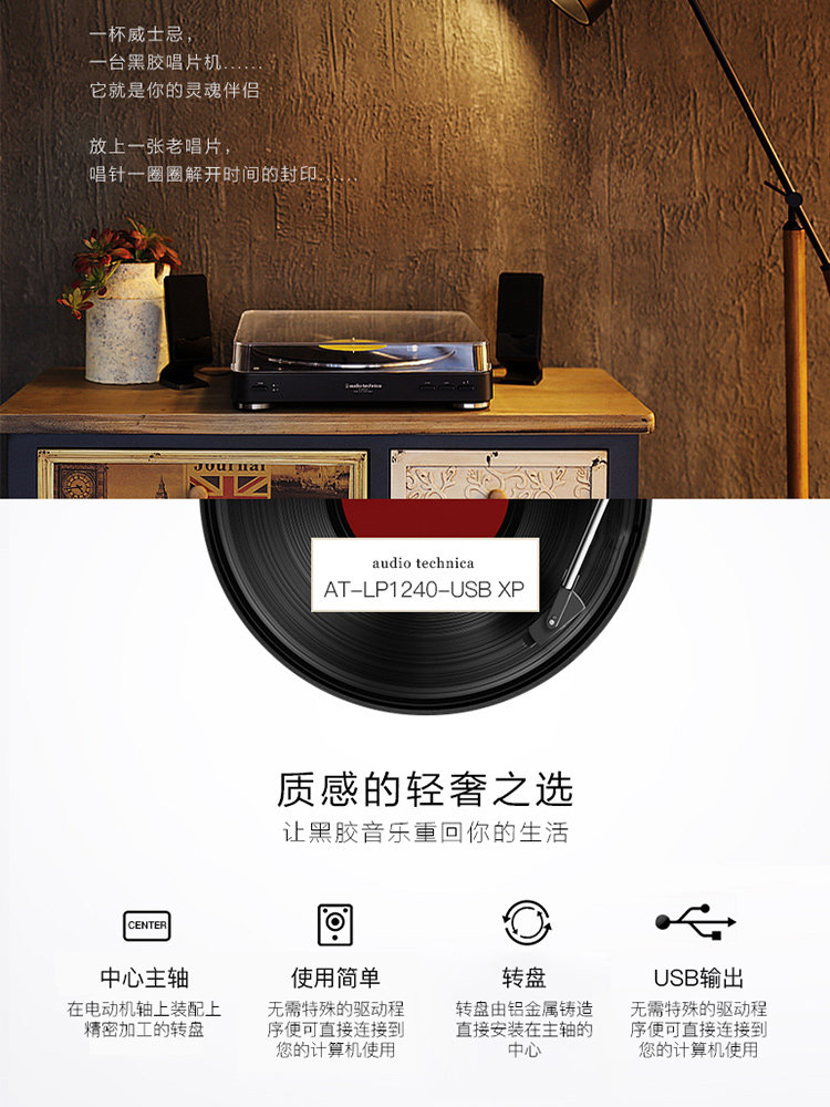 铁三角at-lp1240usbxp直驱式专业黑胶唱片机留声机电唱机搓碟机