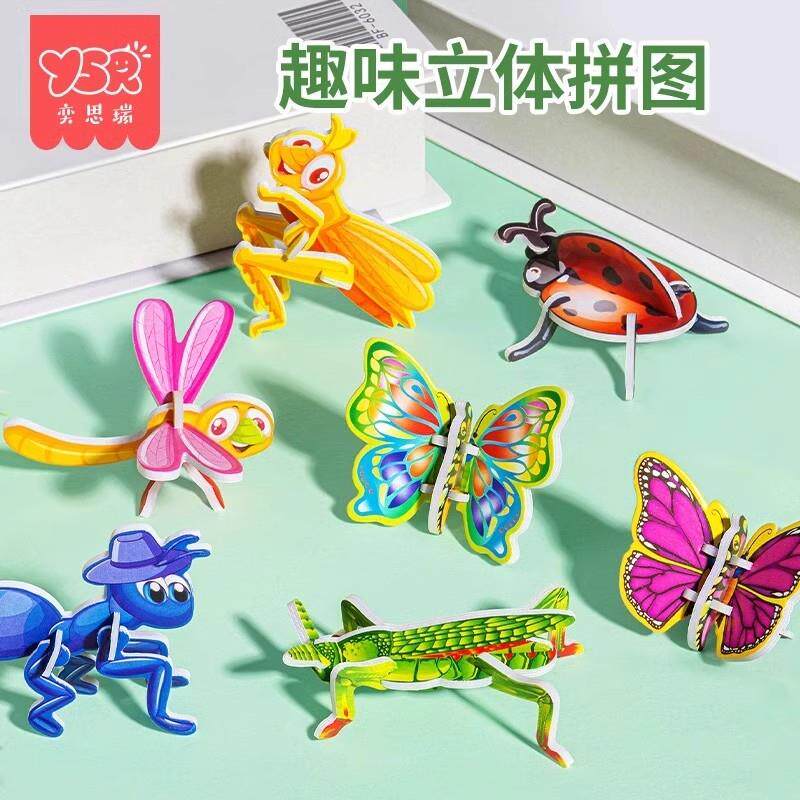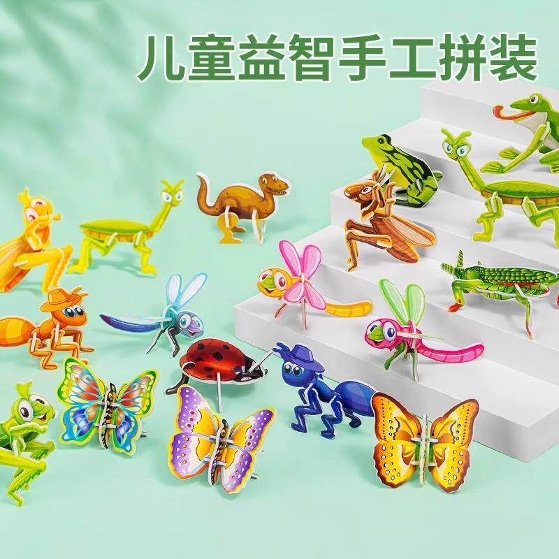 3D趣味昆虫立体拼图儿童DIY玩具幼儿园手工拼装益智卡片动物拼插