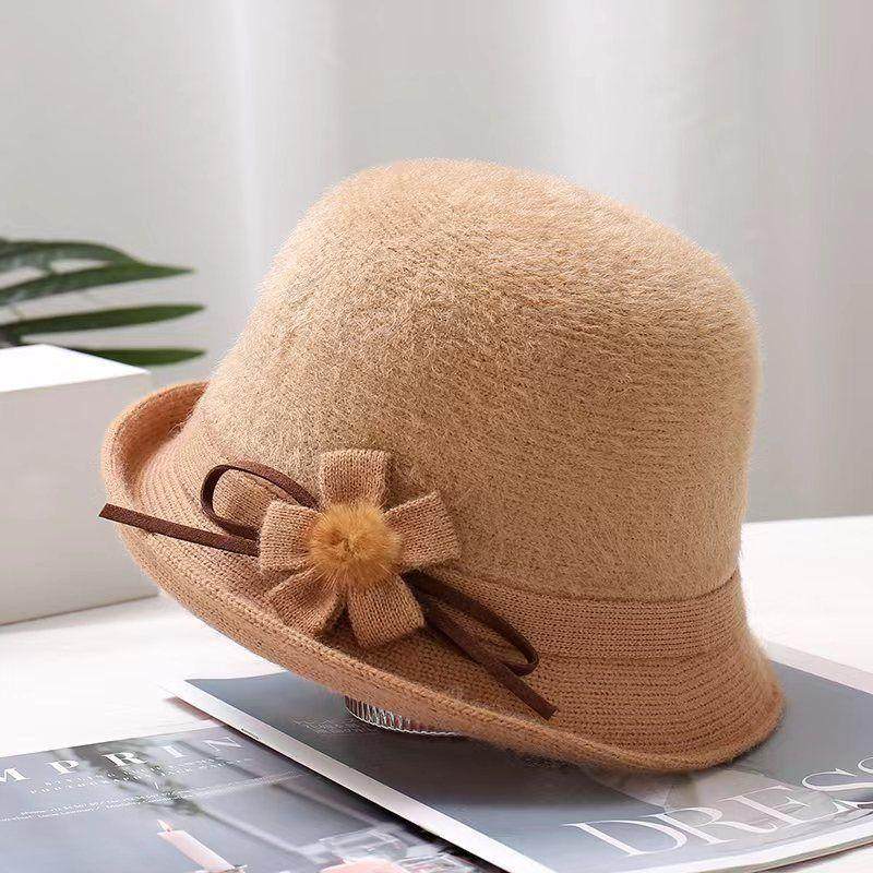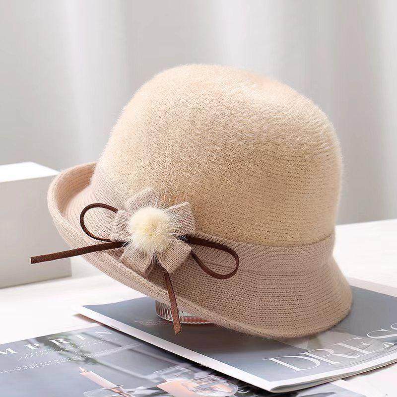 中老年女士早春帽子时尚洋气窄檐针织礼帽秋冬季新款单层毛线帽潮
