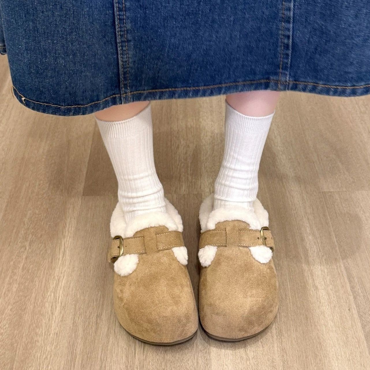 厚底加绒包头半拖鞋女外穿2025秋冬新款毛毛勃肯鞋懒人保暖棉拖鞋