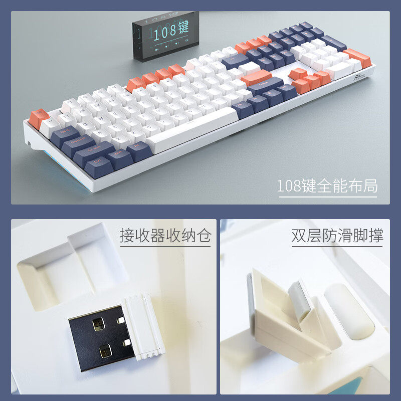 RK108三模机械键盘套件RGB蓝牙2.4G无线有线等高线键帽TTC快银轴
