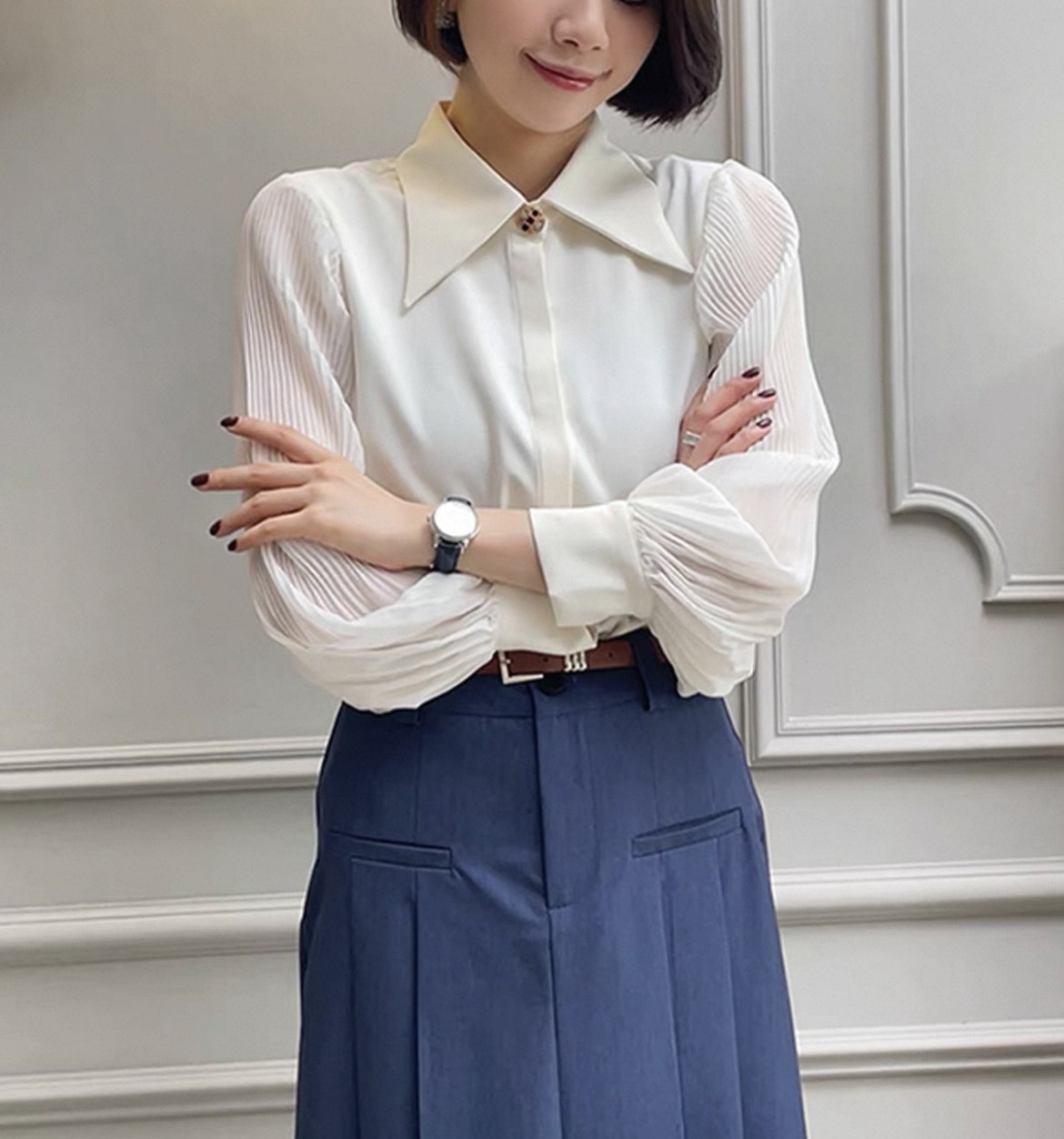 【初见伊人】官方春季新款时尚百搭白衬衫女气质法式衬衣显瘦上衣